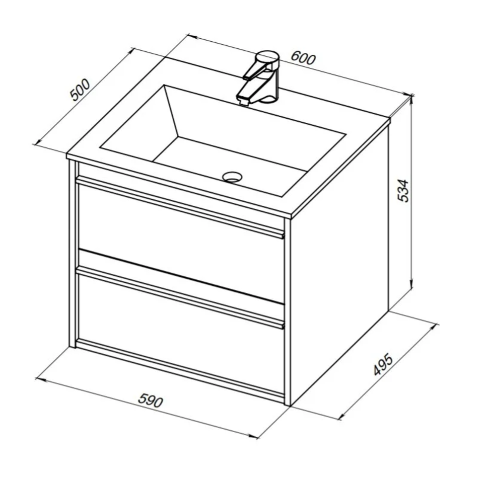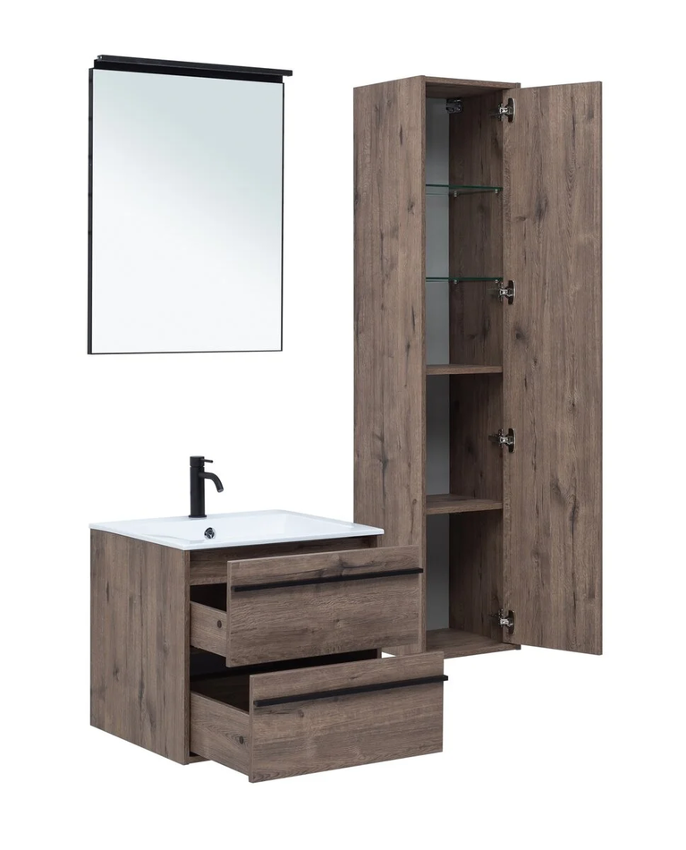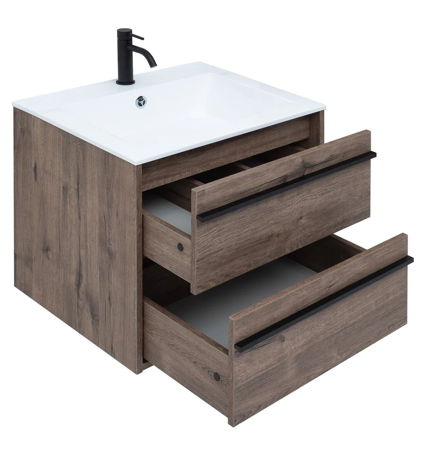 Тумба под раковину Aquanet Lino 60 см подвесная, дуб веллингтон, 253910