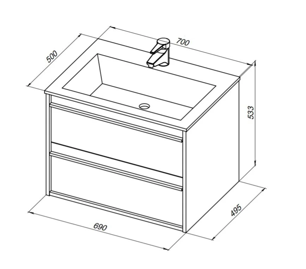 Тумба под раковину Aquanet Lino 70 см подвесная, белый матовый, 253902