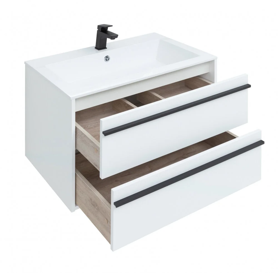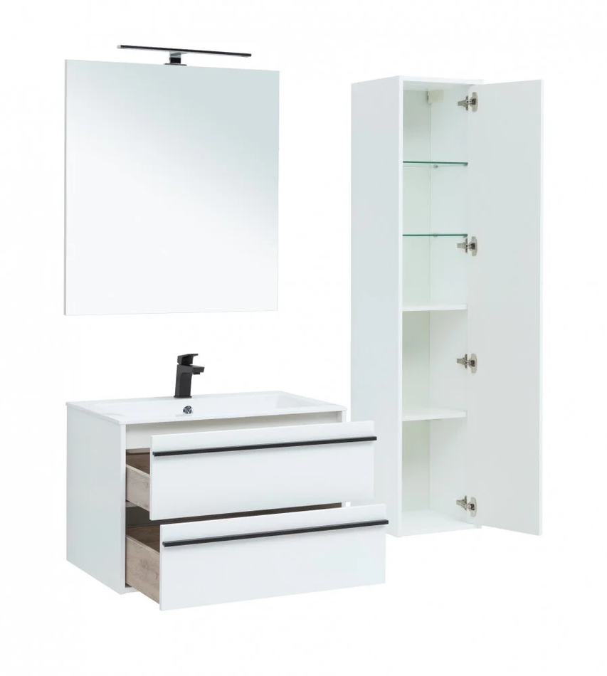 Тумба под раковину Aquanet Lino 80 см подвесная, белый матовый, 253903