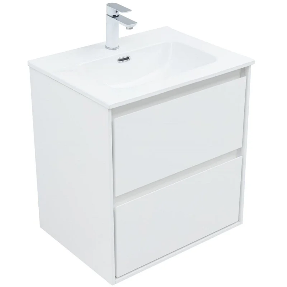 Тумба с раковиной Aquanet Милан 60 белый глянец — это идеальное сочетание стиля и функциональности, что позволяет ей гармонично вписаться в любой интерьер. Тонкие внутренние линии и элегантные боковые стенки создают эффект воздушности, а двойной корпус добавляет дополнительную прочность и долговечность. Каждый элемент продуман до мелочей; удобная интегрированная ручка с фрезеровкой 45 градусов не только облегчает использование, но и добавляет эстетику.