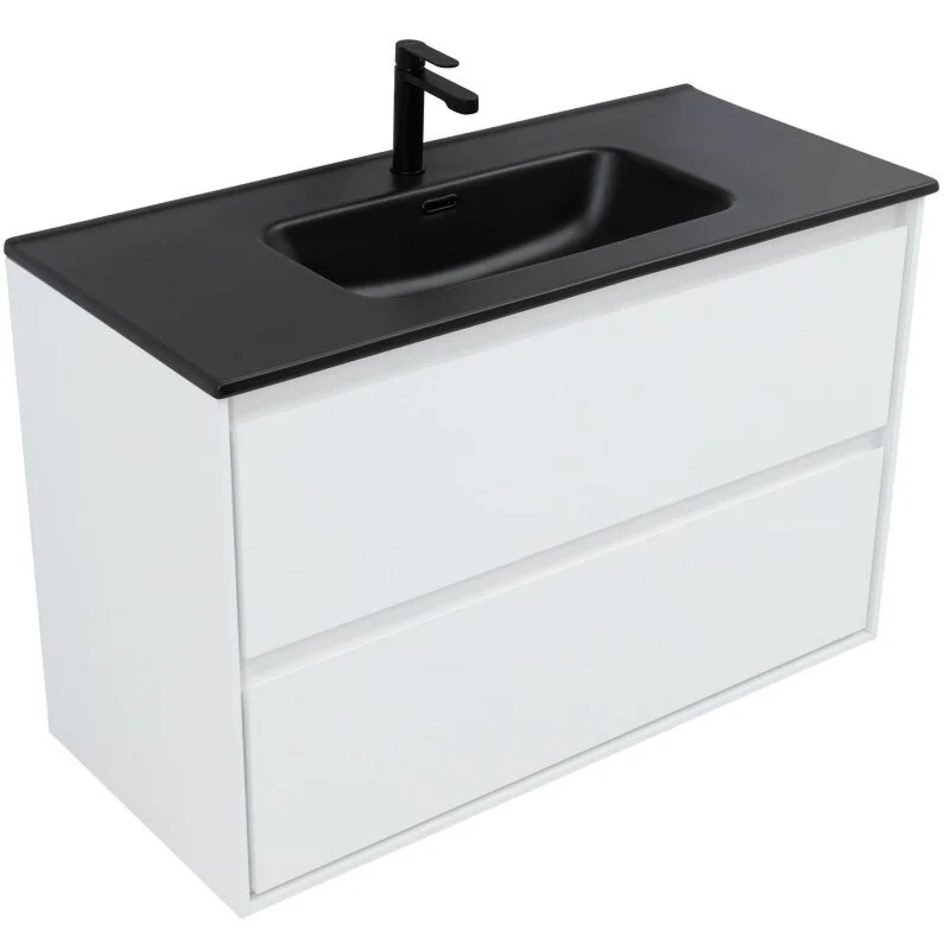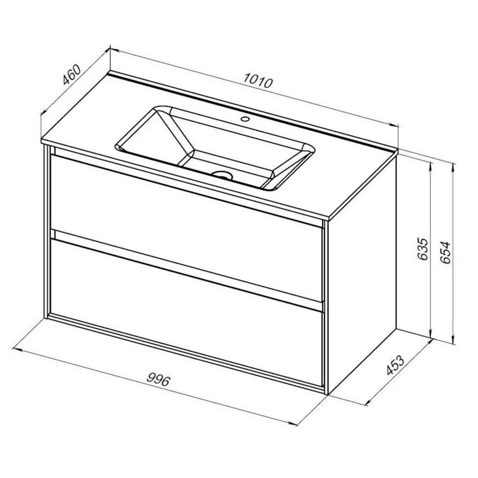 Тумба подвесная Размер: 99.6*45,3*63,5 см Выдвижные ящики:2 Механизм доводчика Материал: ЛДСП Покрытие: эмаль/глянец Цвет фурнитуры: хром Цвет: белый глянец
