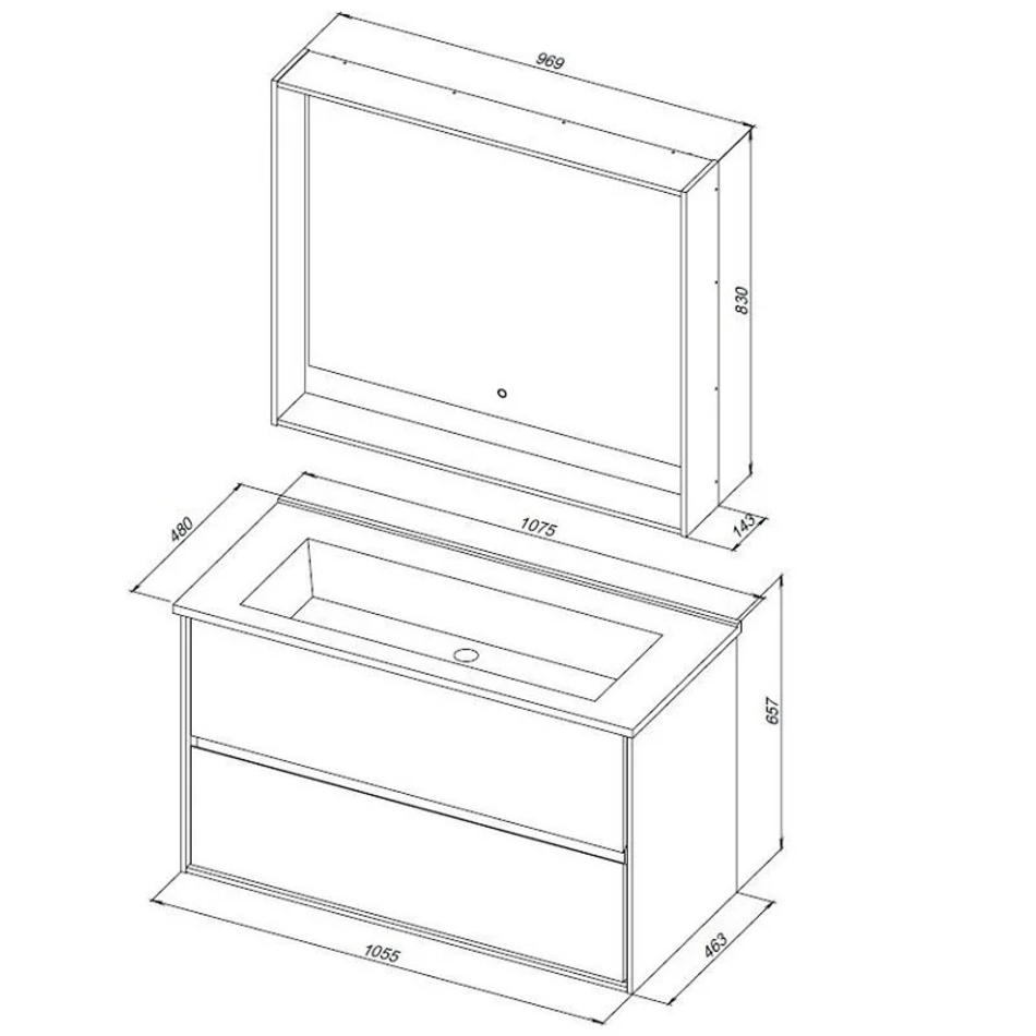 Тумба подвесная Размер: 105,5*46,3*65,7 см Выдвижные ящики:2 Механизм доводчика Материал: ЛДСП Покрытие: ламинат/фактура Цвет фурнитуры: хром Цвет: дуб рустикальный
