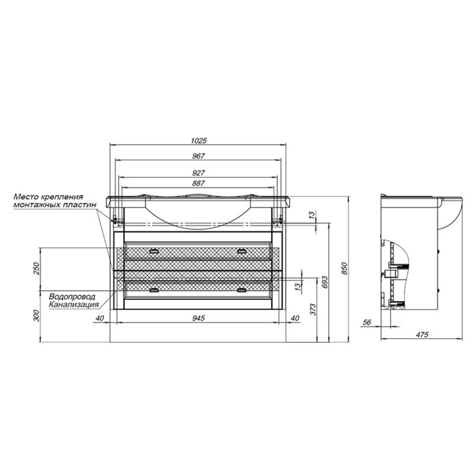 Размер: 105x33x60,5 см