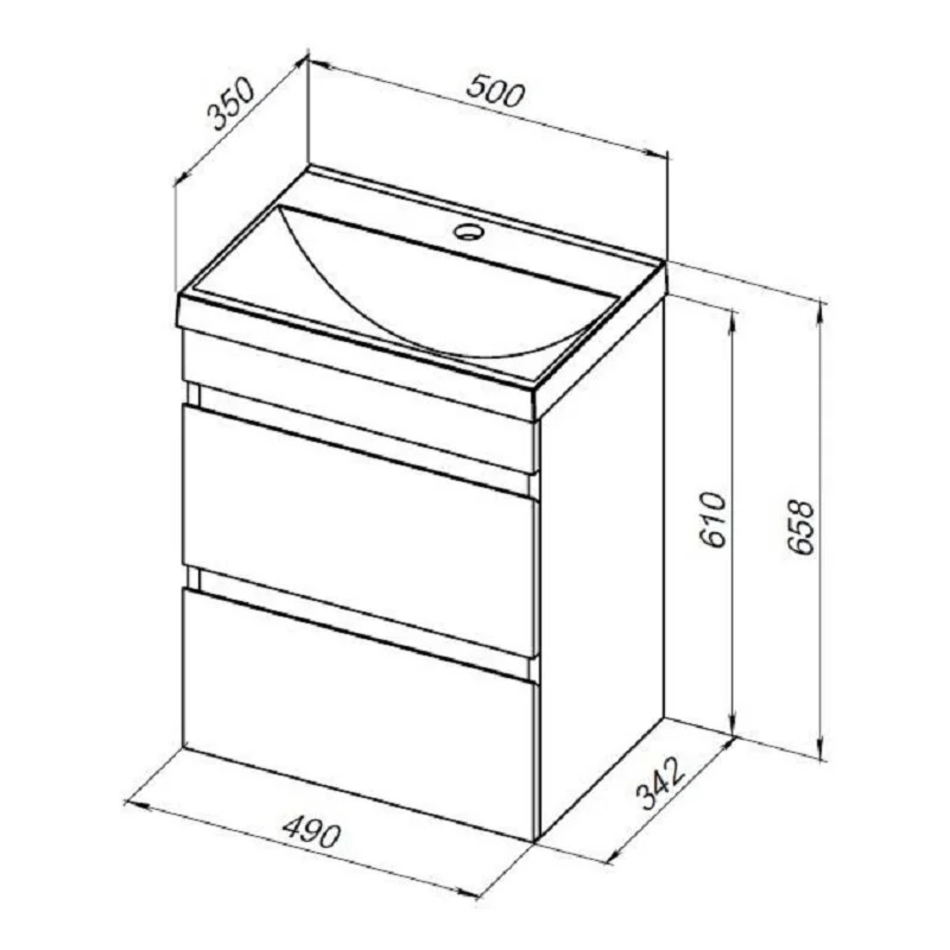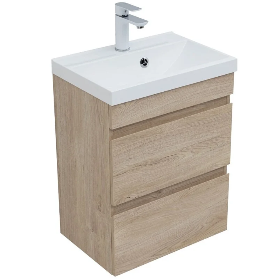 Тумба под раковину Размер: 49 x 34,2 x 61 см Монтаж: подвесной Ящики выдвижные: 2 Покрытие фасада: ламинат/фактура Материал: МДФ, ЛДСП Форма: прямоугольная Цвет: дуб светлый