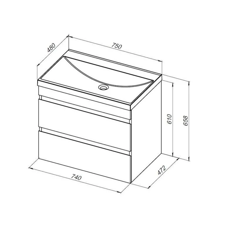 Тумба под раковину Размер: 74 x 47,2 x 61 см Монтаж: подвесной Ящики выдвижные: 2 Покрытие фасада: ламинат/фактура Материал: МДФ, ЛДСП Форма: прямоугольная Цвет: дуб светлый
