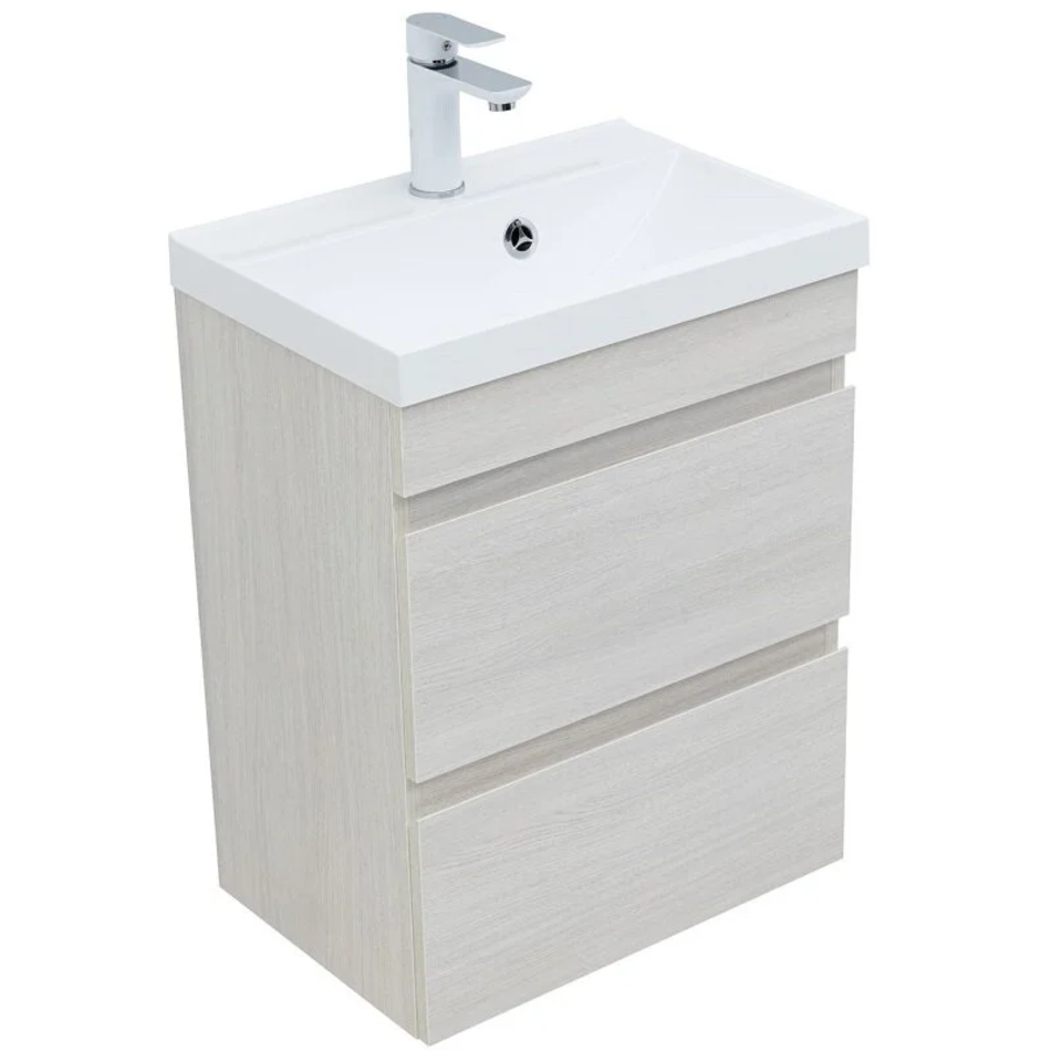 Тумба под раковину Размер: 49 x 34,2 x 61 см Монтаж: подвесной Ящики выдвижные: 2 Покрытие фасада: ламинат/фактура Материал: МДФ, ЛДСП Форма: прямоугольная Цвет: дуб холден
