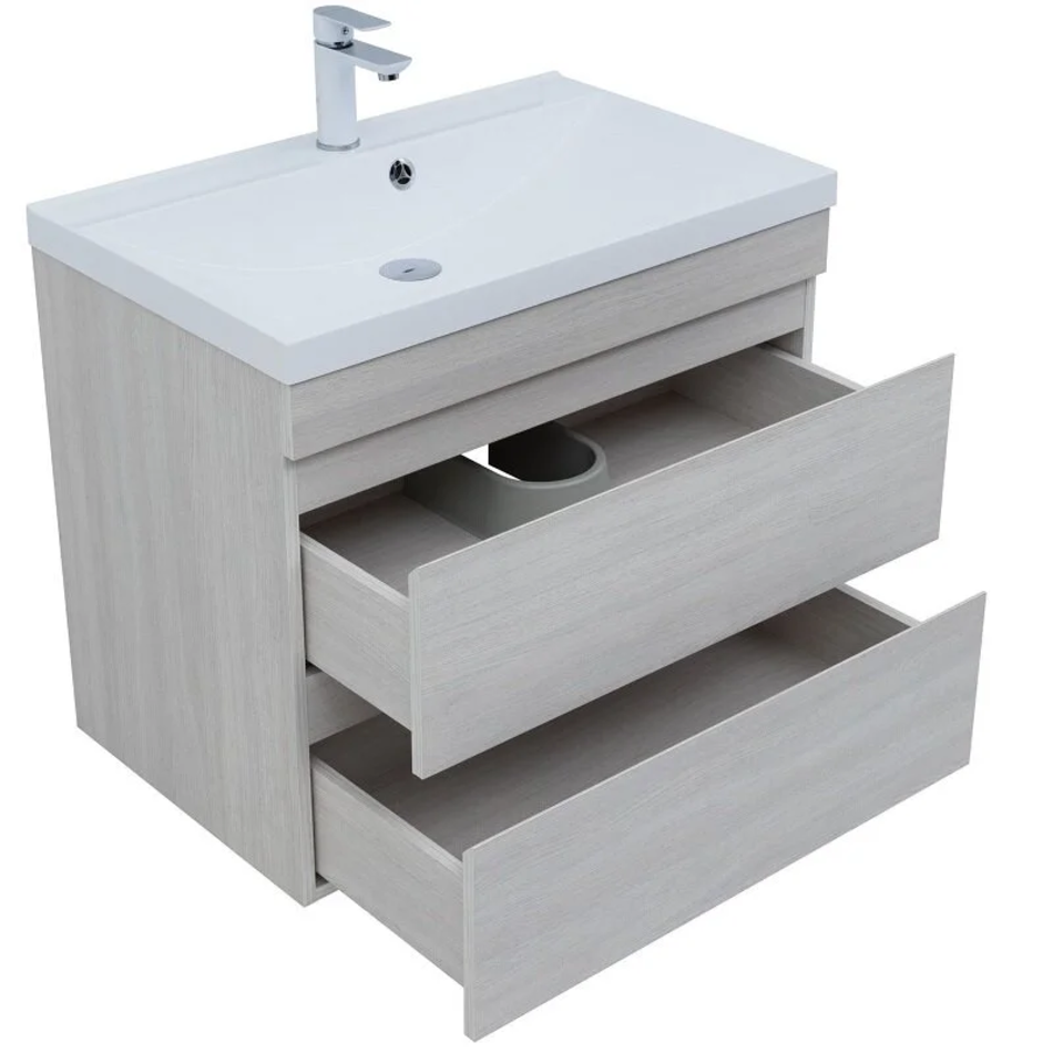 Тумба под раковину Размер: 74 x 47,2 x 61 см Монтаж: подвесной Ящики выдвижные: 2 Покрытие фасада: ламинат/фактура Материал: МДФ, ЛДСП Форма: прямоугольная Цвет: дуб холден