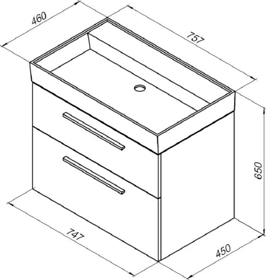 Тумба под раковину Aquanet Nova Lite 75, 2 ящика, белый глянец