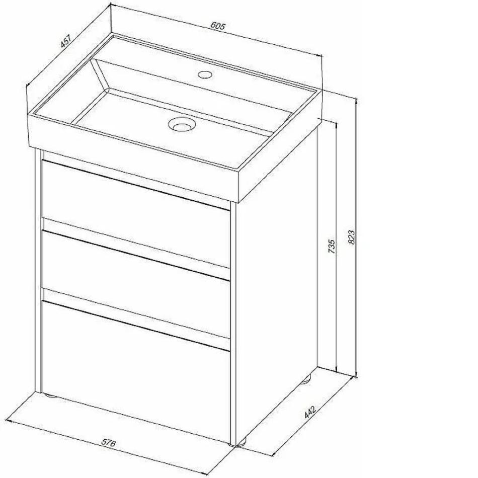 Габариты корпуса тумбы (ШxВxГ): 576х735х442 мм.