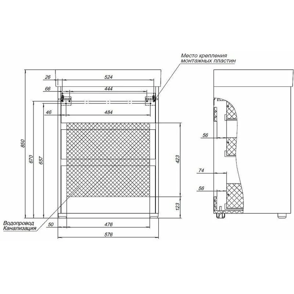 Габариты корпуса тумбы (ШxВxГ): 576х735х442 мм.