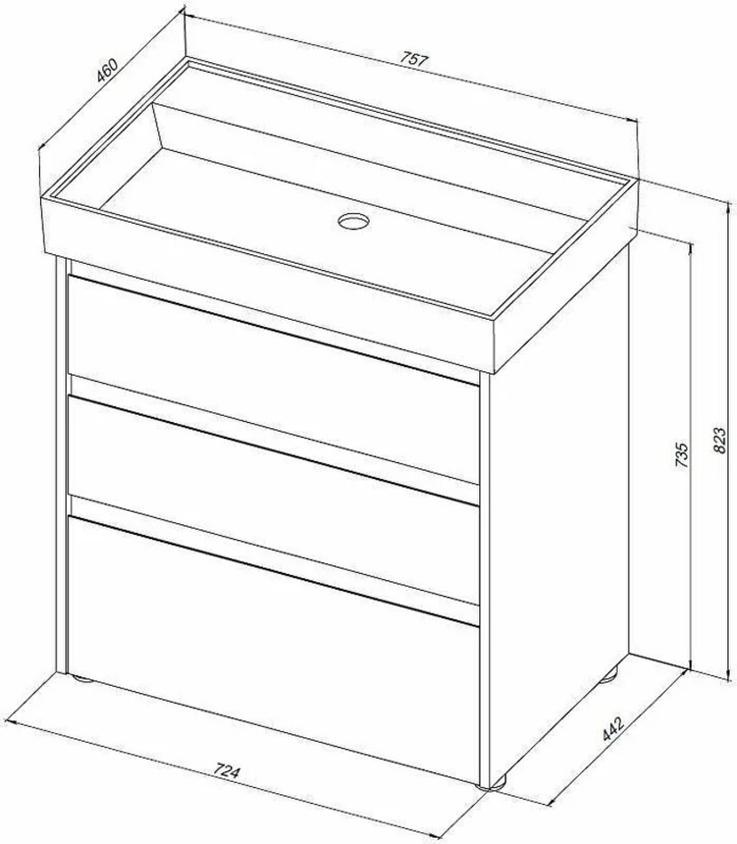 Габариты корпуса тумбы (ШxВxГ): 724х735х442 мм.