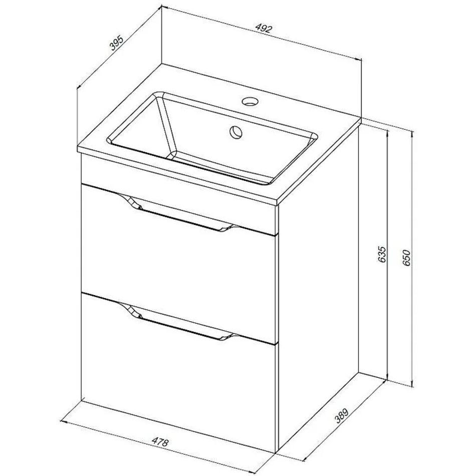 Тумба под раковину Aquanet Практика 330455, 50 см, 2 ящика, цвет белый матовый