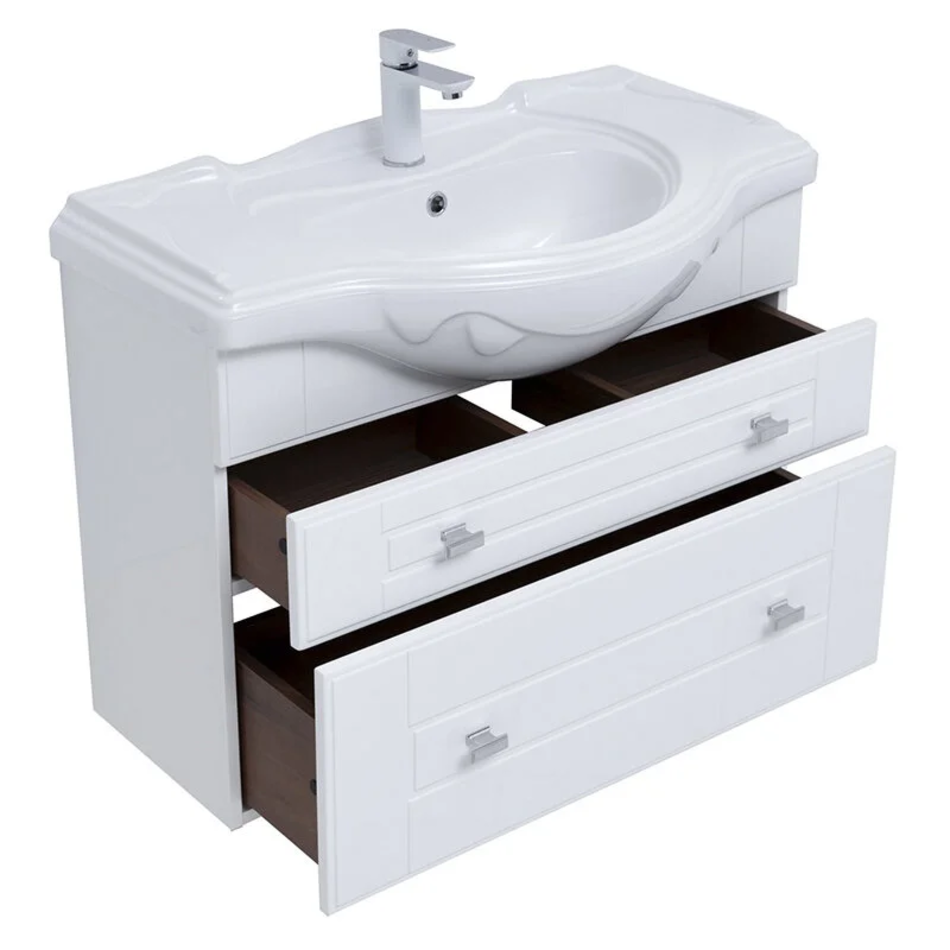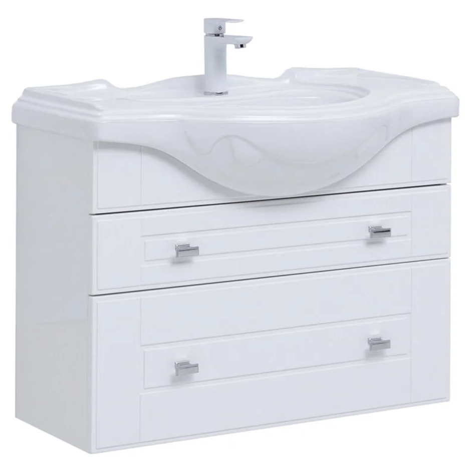Тумба под раковину Aquanet Рондо 85 см, подвесная, 2 ящика, цвет белый, 304289