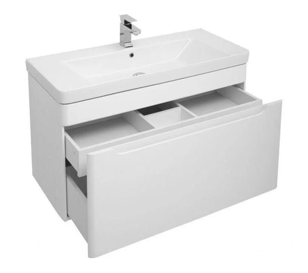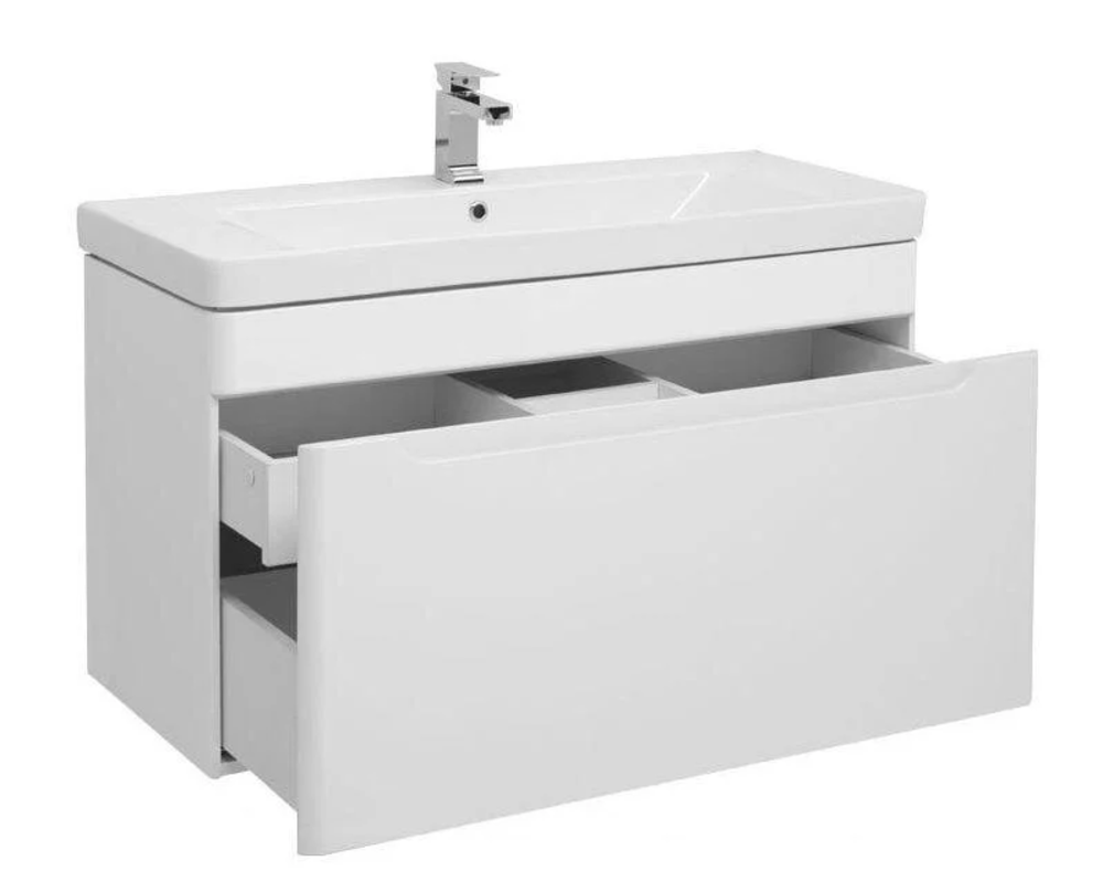 Тумба подвесная Размер: 105.5*46*62.4 см Выдвижные ящики: 2 Материал: МДФ, ЛДСП Покрытие: краска/глянец Цвет: белый глянец