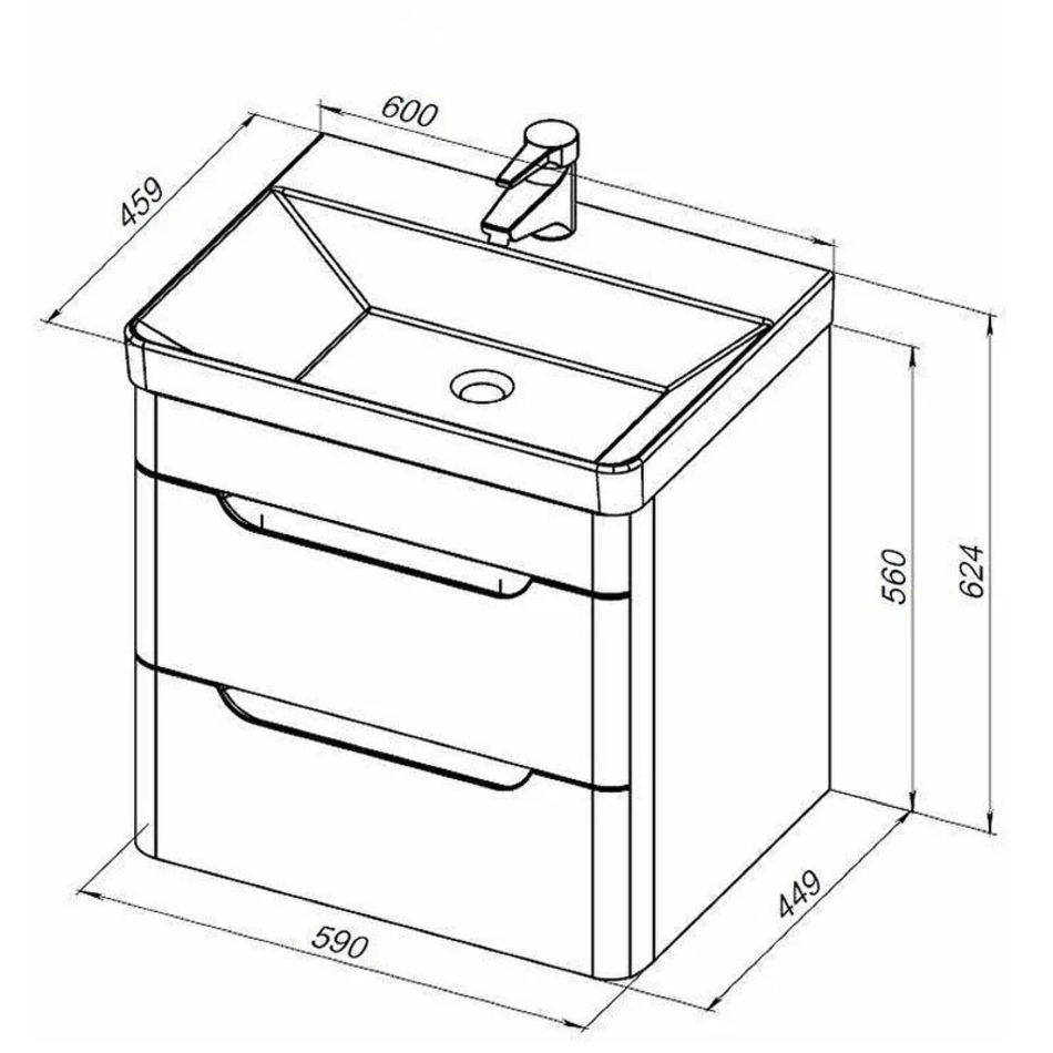 Тумба подвесная Размер: 59х44,9х56 см Выдвижные ящики: 2 Материал: МДФ, ЛДСП Покрытие: краска/глянец Цвет: белый глянец Вес: 22,2 кг
