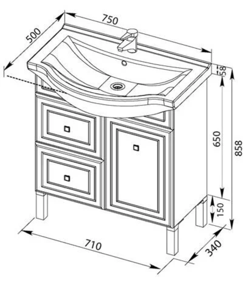 Тумба напольная Размер: 75*50*85.8 см Двери: 2 распашные Выдвижные ящики: 2 Механизм доводчика Материал: МДФ, ЛДСП Покрытие: краска/глянец Цвет фурнитуры: хром Цвет: белый