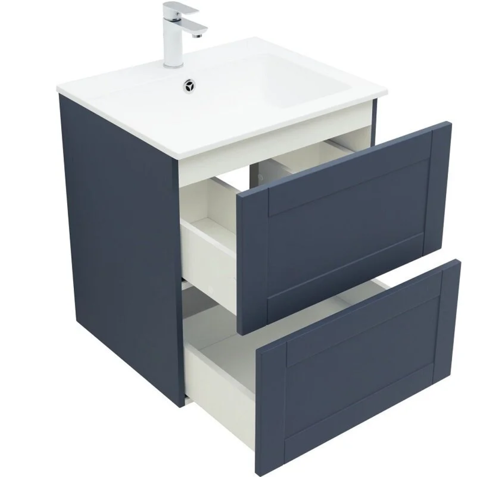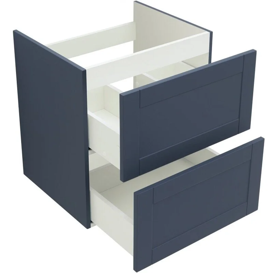 Для изготовления фасадов и корпусов используется суперматовая пленка ПВХ повышенной прочности с эффектом «Soft touch». Тумба имеет приятную, бархатистую на ощупь поверхность, устойчивую к царапинам и воздействию влаги. Глубина тумбы с раковиной - 500 мм. Выдвижные ящики открываются нажатием на фасад (направляющие с системой рush-to-open). Материал ящиков и внутренних деталей - ВЛДСП