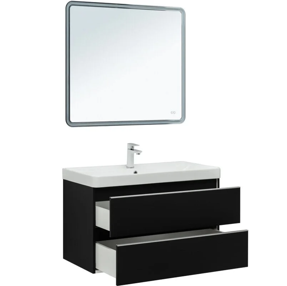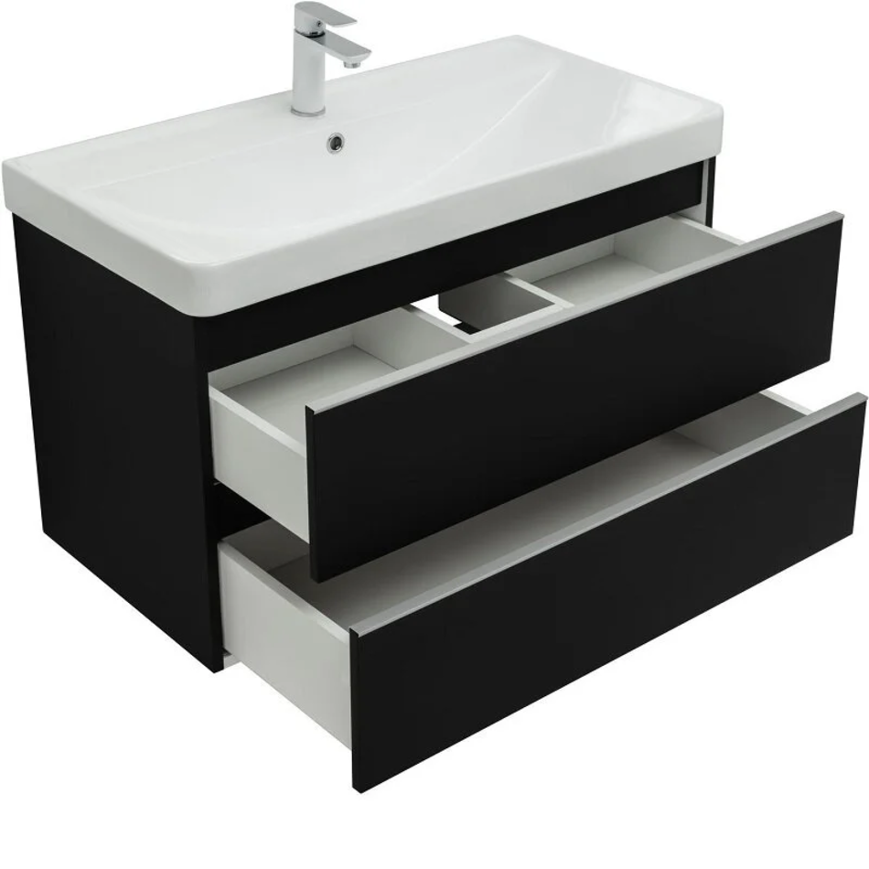 Тумба под раковину Aquanet Вега 2.0, 337956, 90 см, подвесная, черный soft touch