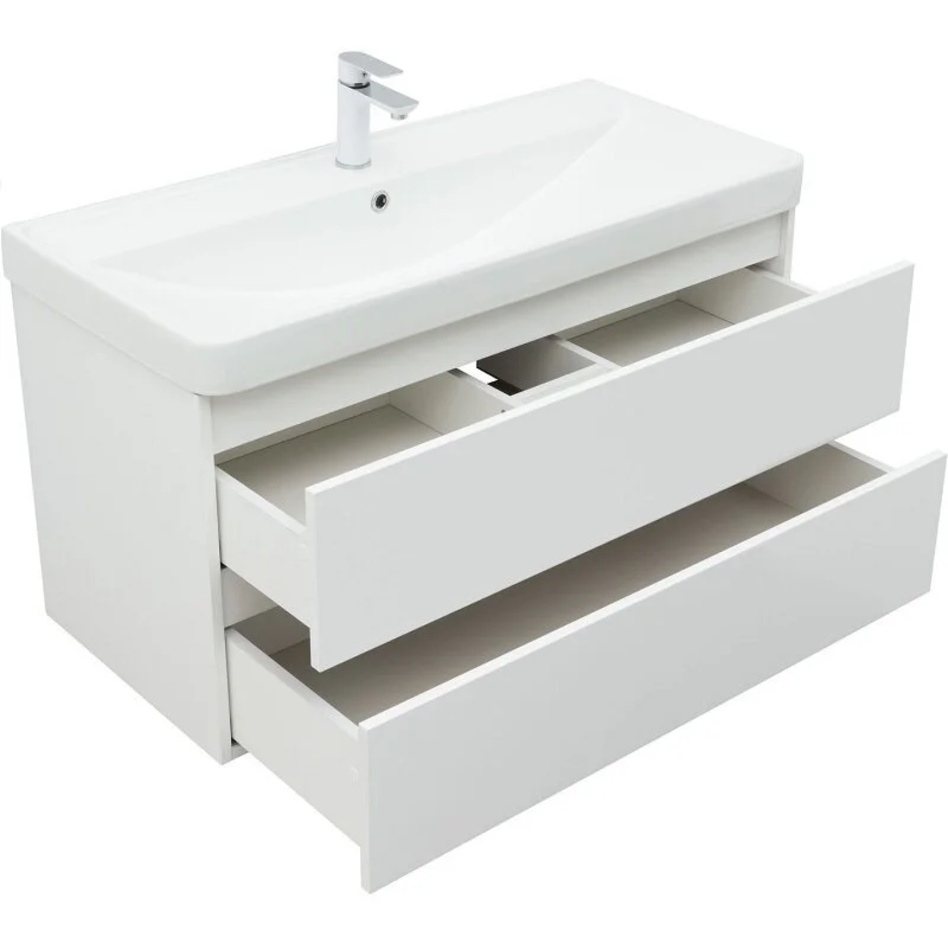 Тумба под раковину Aquanet Вега 316655, 100 см, подвесная, белый глянец