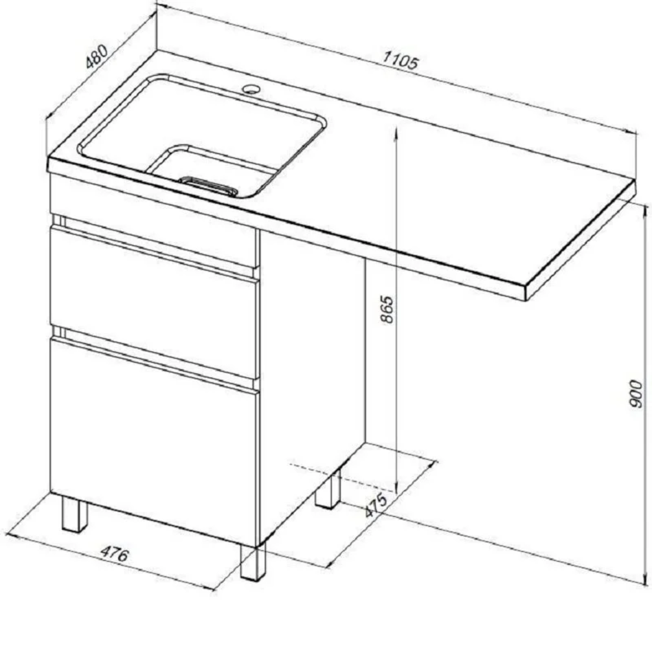 Тумба под раковину Aquanet Вега 329123, 110 см, напольная, белый глянец
