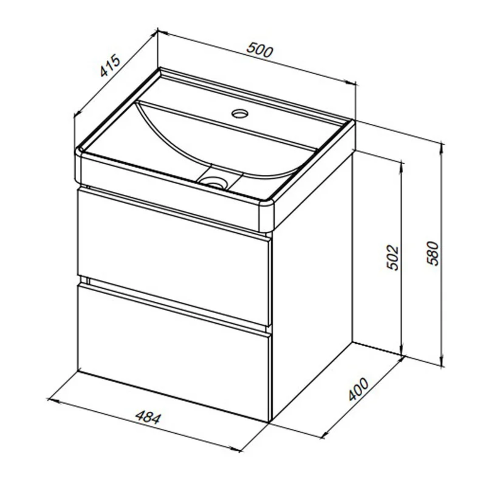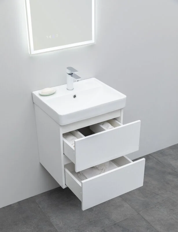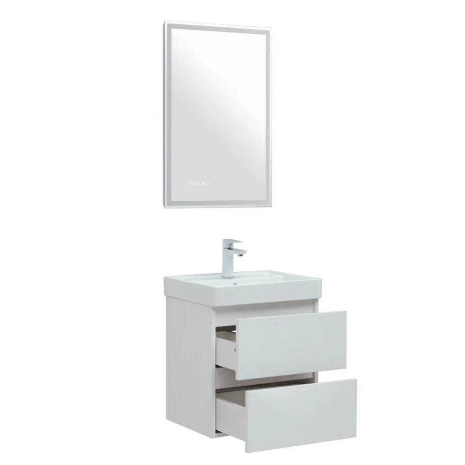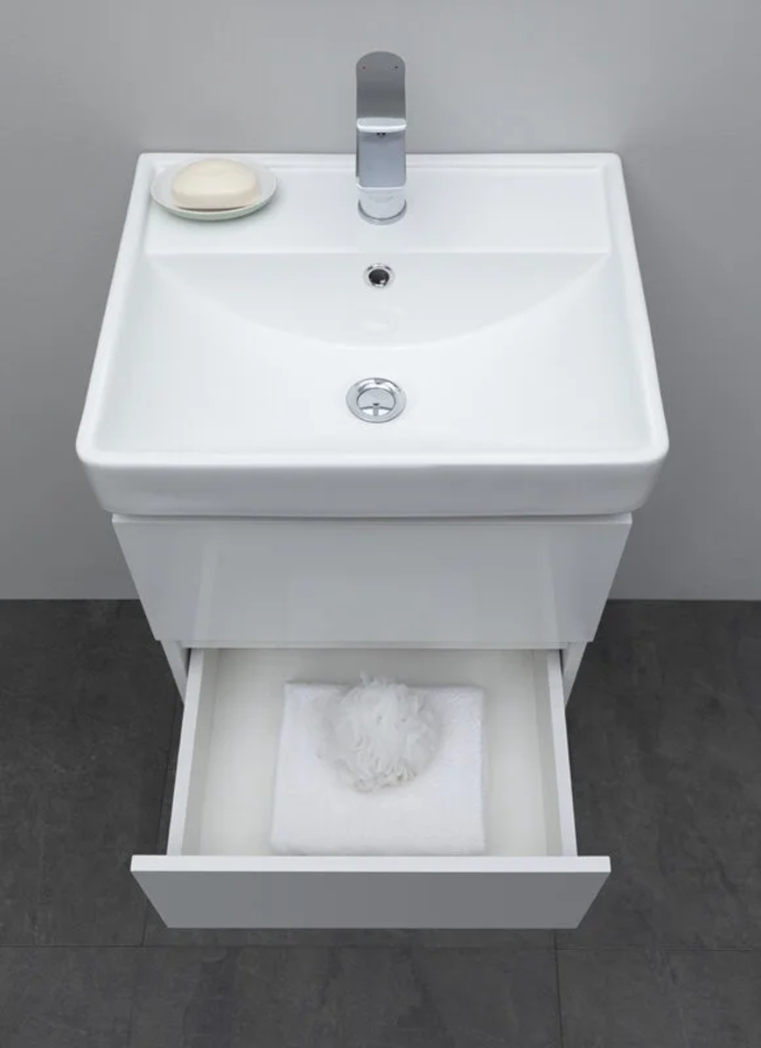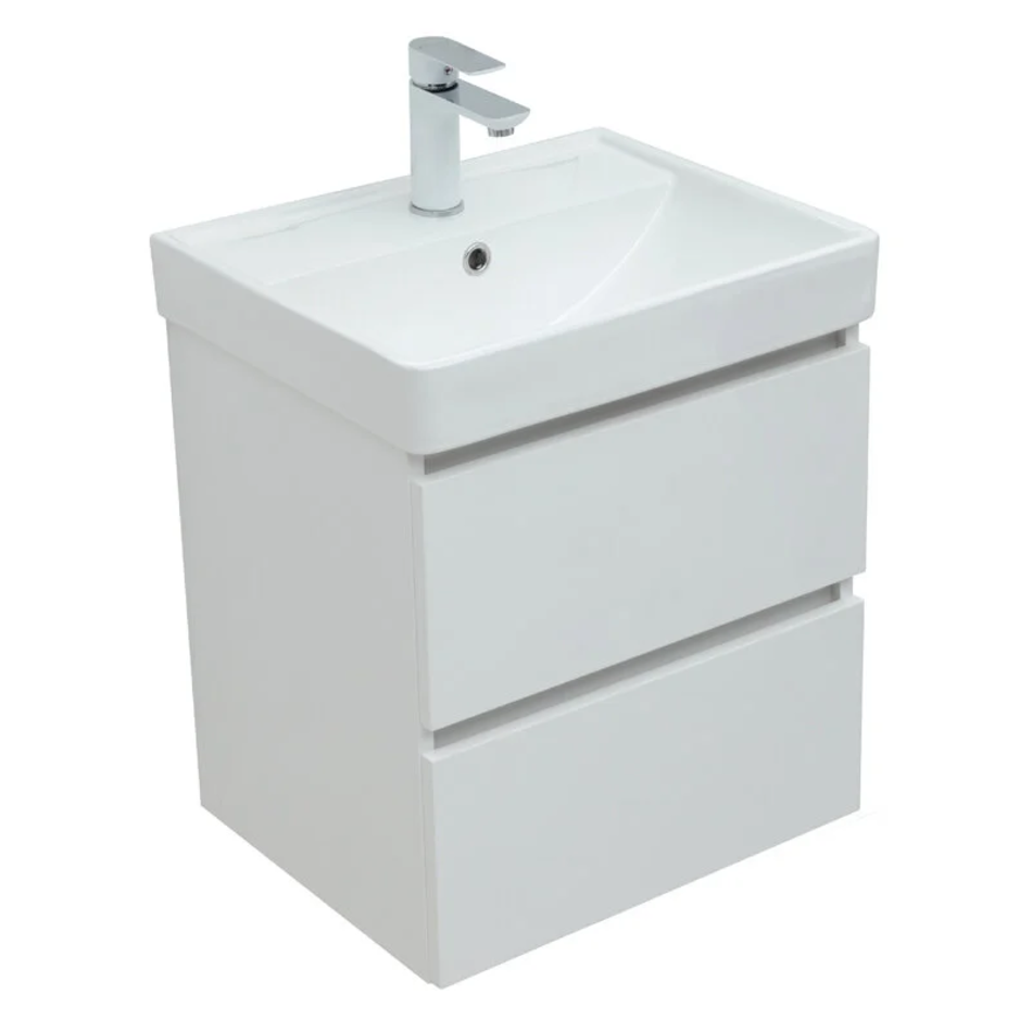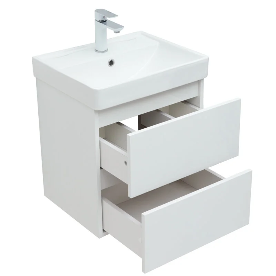 Тумба под раковину Aquanet Вега 50, подвесная, 2 ящика, белый глянец, 00308332