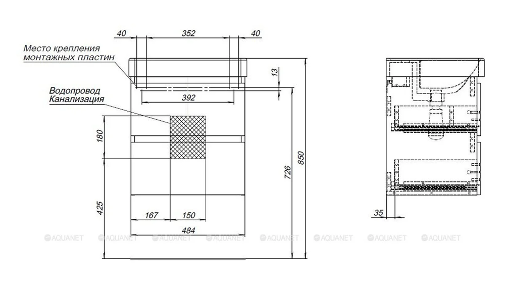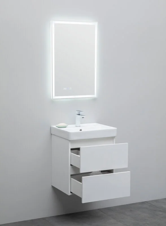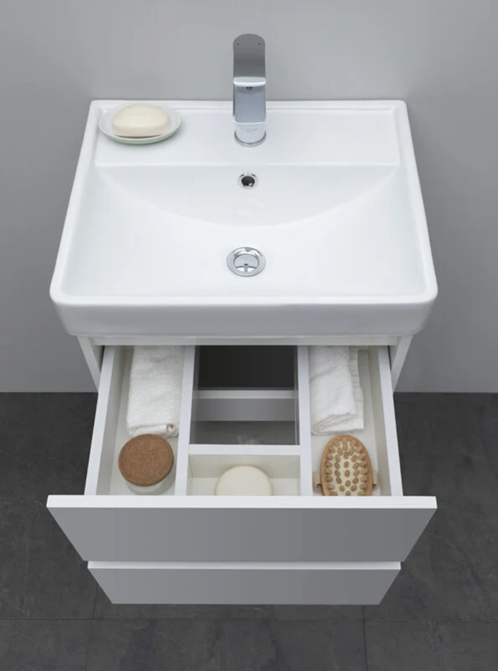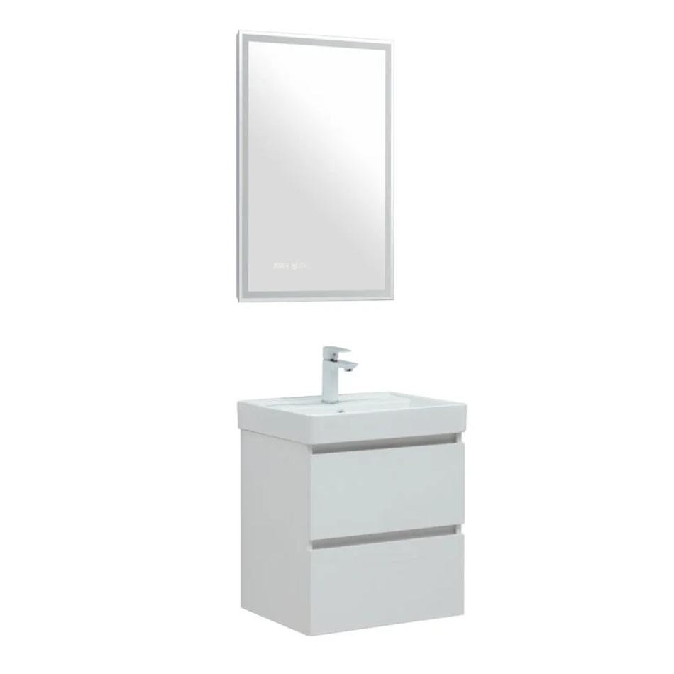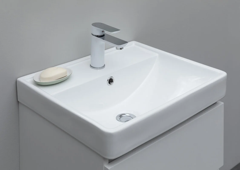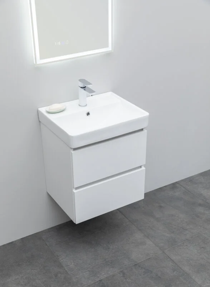 Тумба под раковину Aquanet Вега 50, подвесная, 2 ящика, белый глянец, 00308332