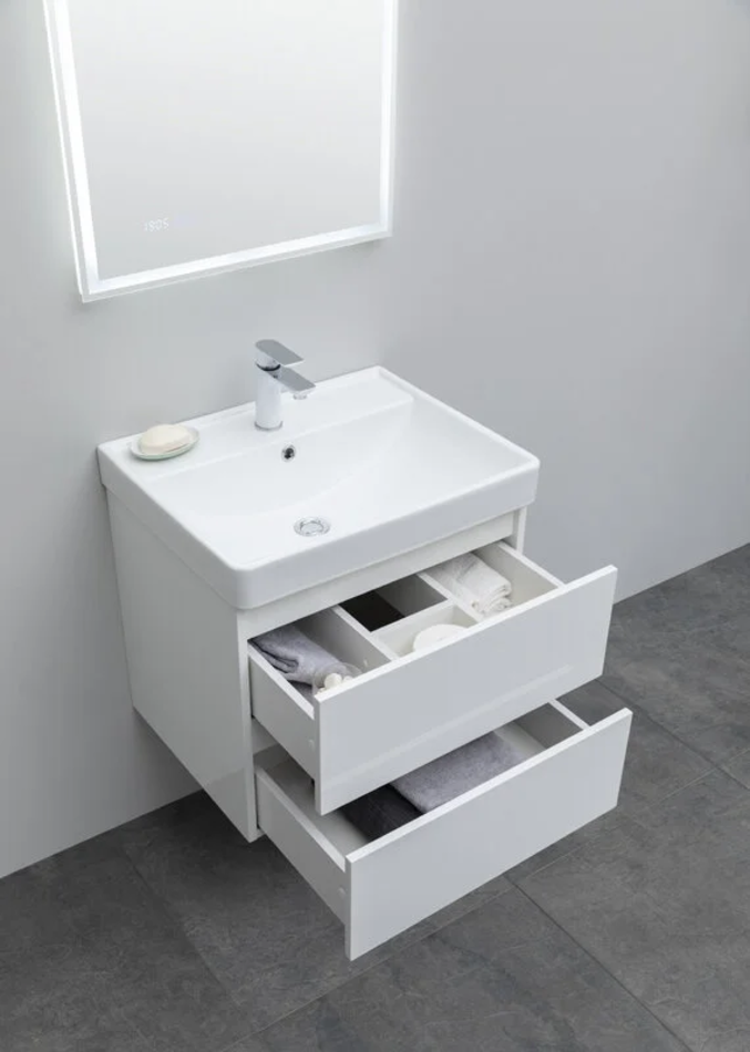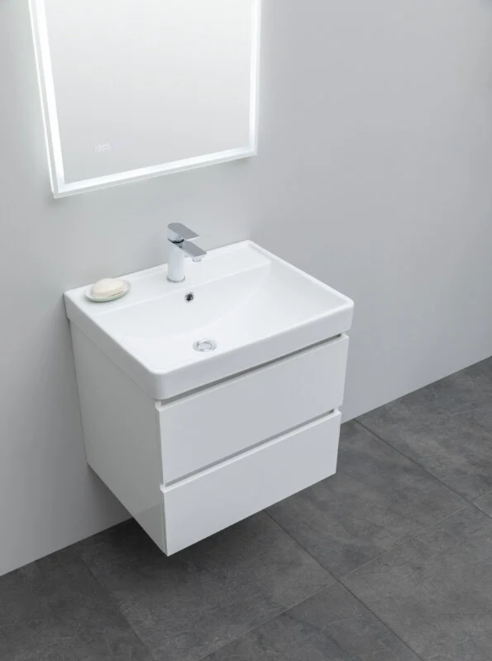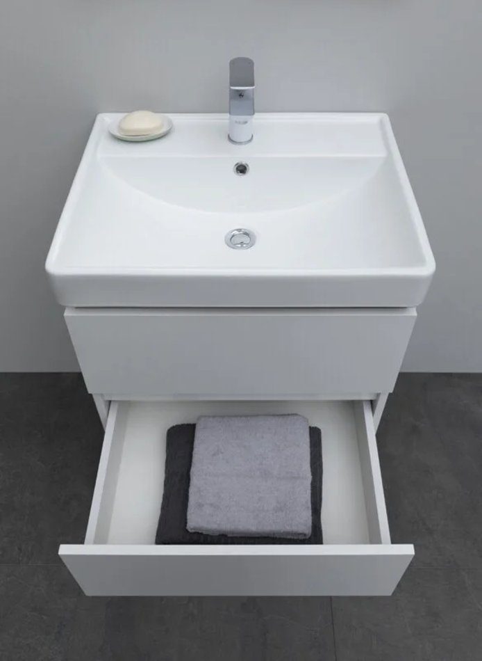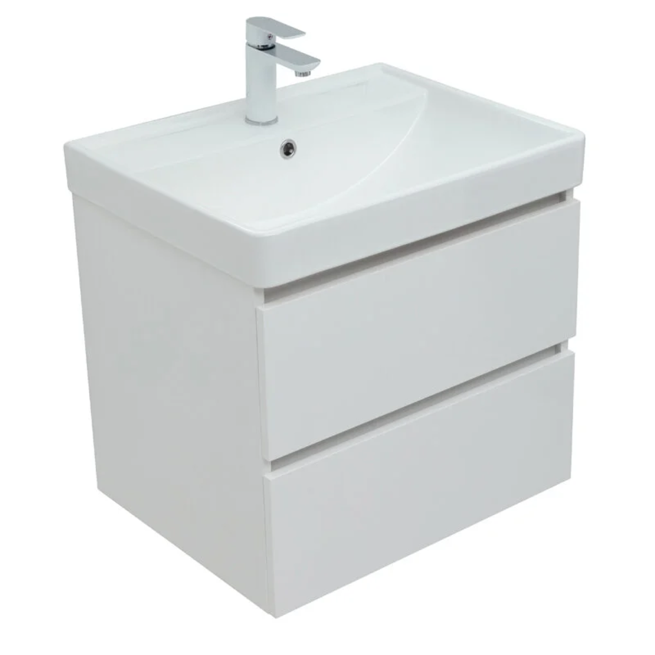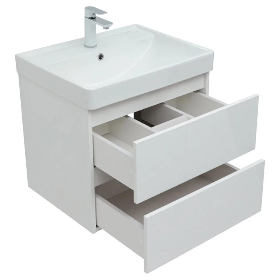 Тумба под раковину Aquanet Вега 60, подвесная, 2 ящика, белый глянец, 00308318