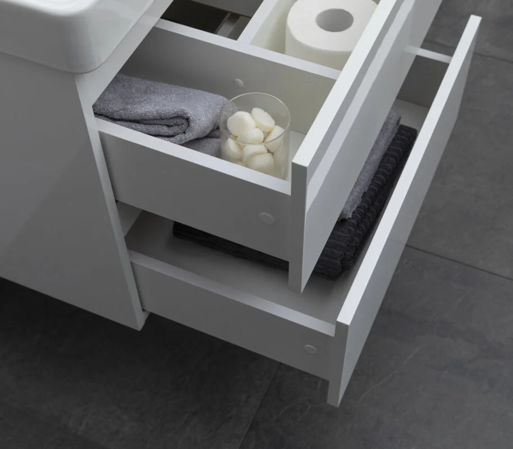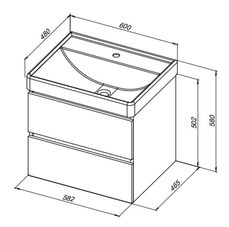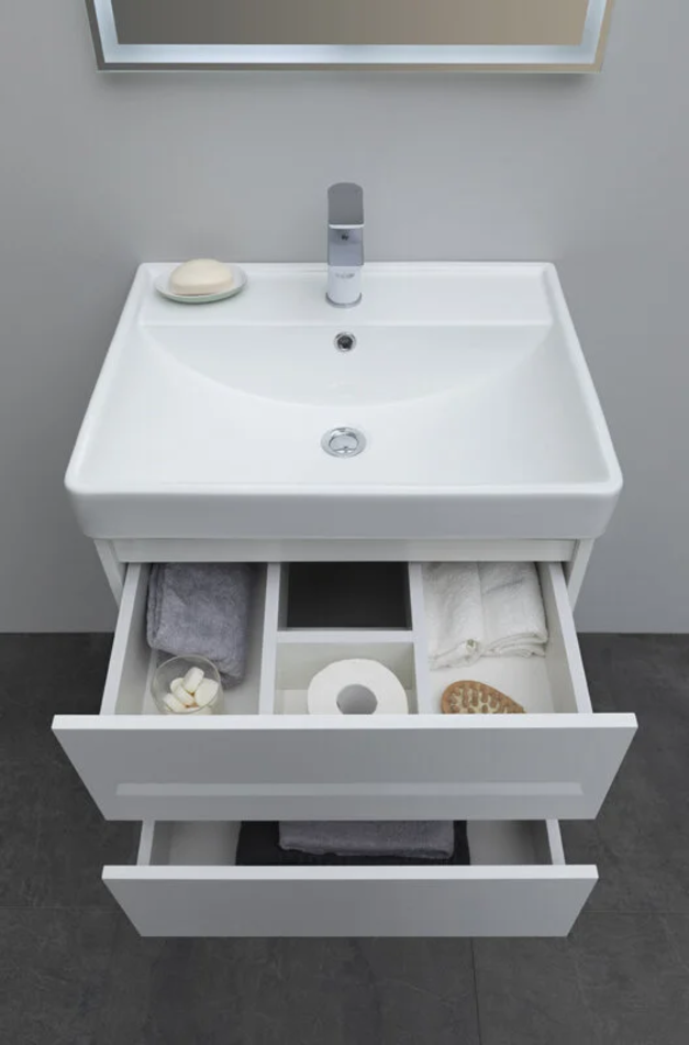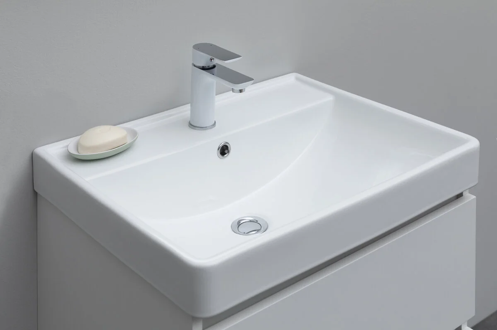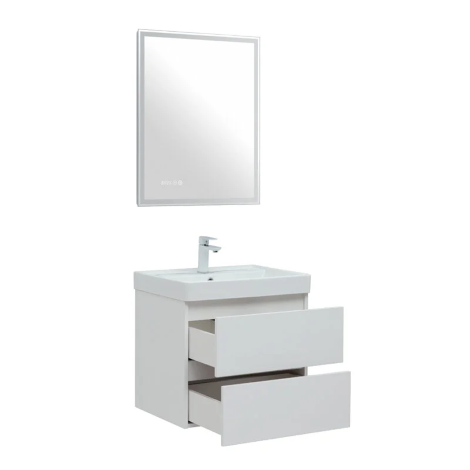 Тумба под раковину Aquanet Вега 60, подвесная, 2 ящика, белый глянец, 00308318