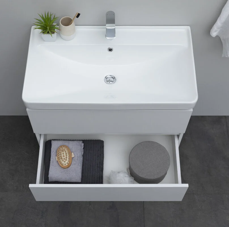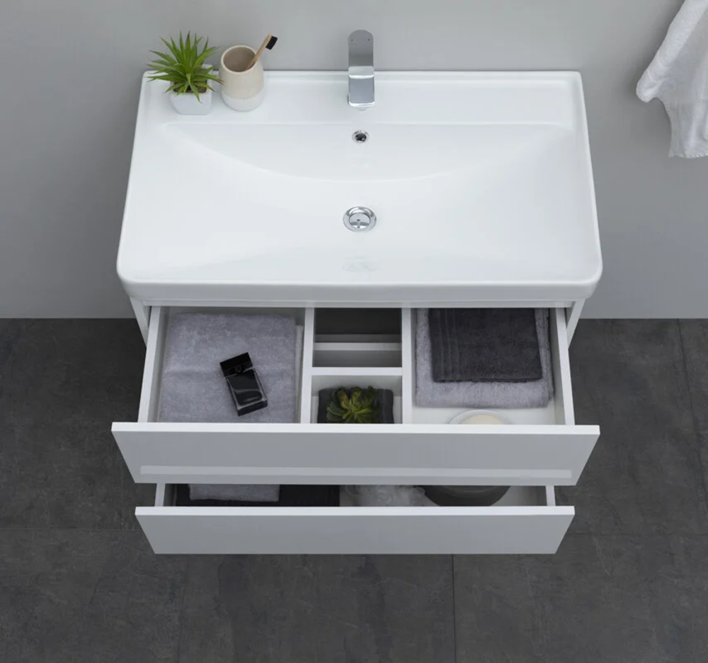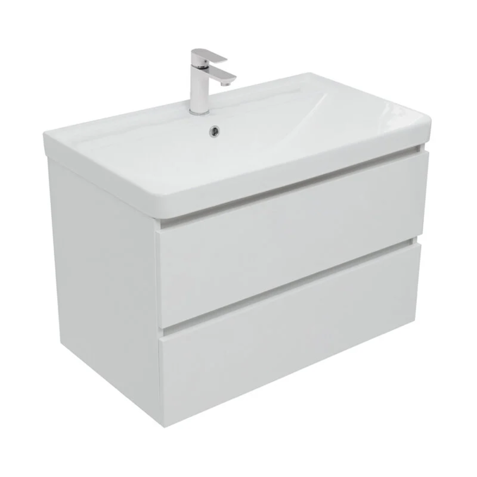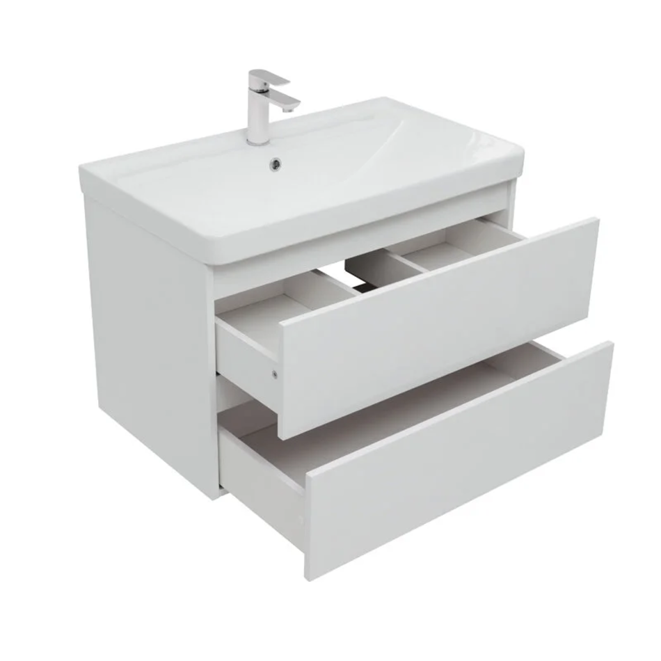 Тумба под раковину Aquanet Вега 80, подвесная, 2 ящика, белый глянец, 00308334