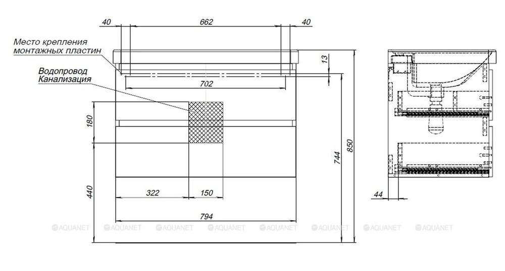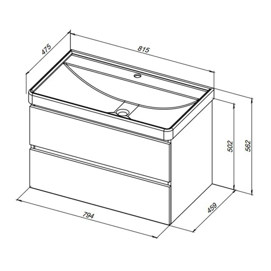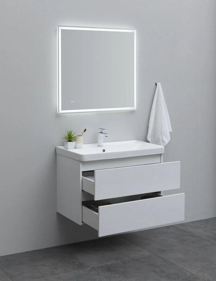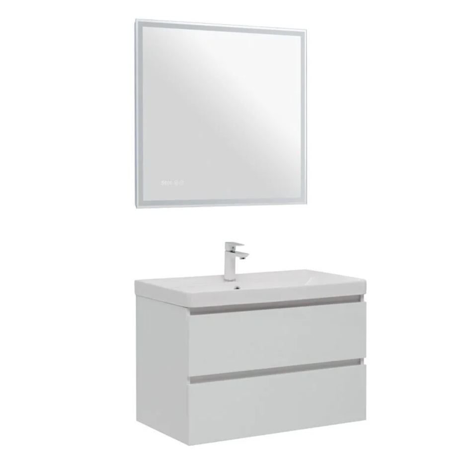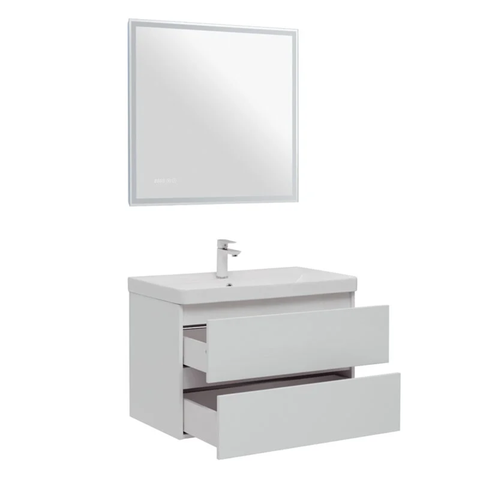 Тумба под раковину Aquanet Вега 80, подвесная, 2 ящика, белый глянец, 00308334