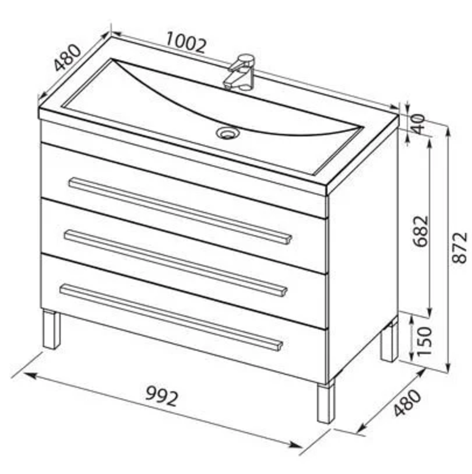 Тумба под раковину Aquanet Верона 100 напольная (3 ящика)