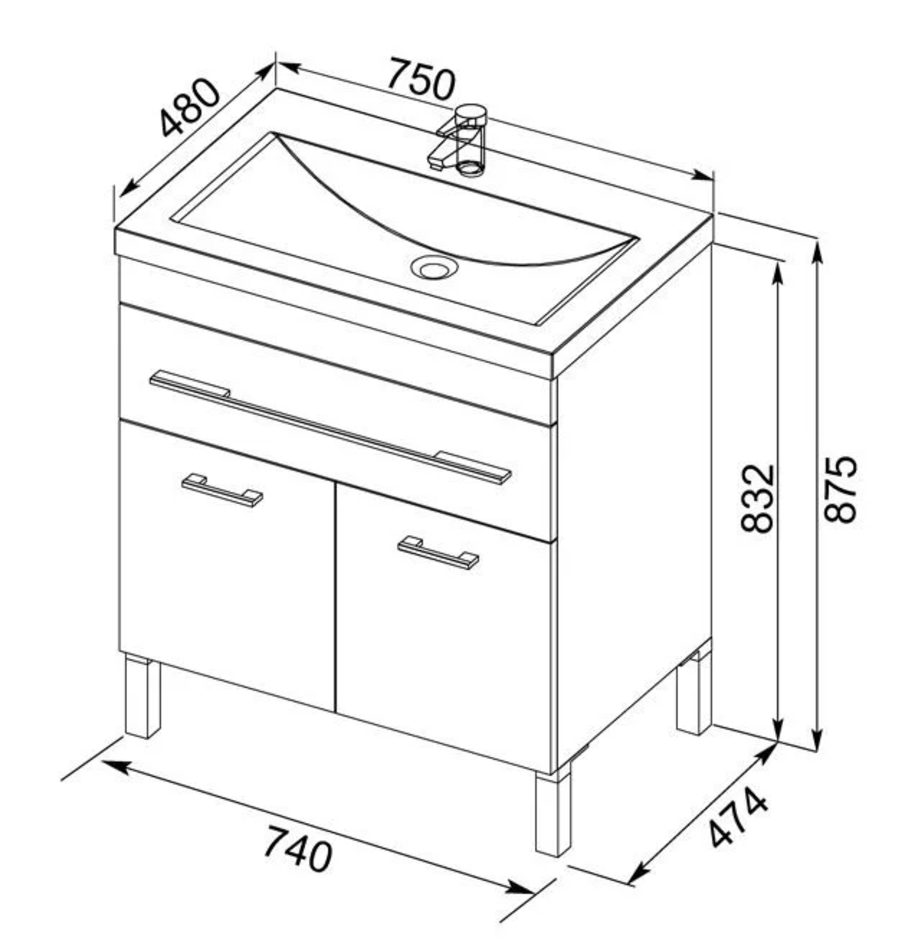 Тумба под раковину Aquanet Верона 75 напольная (2 дверцы, 1 ящик)