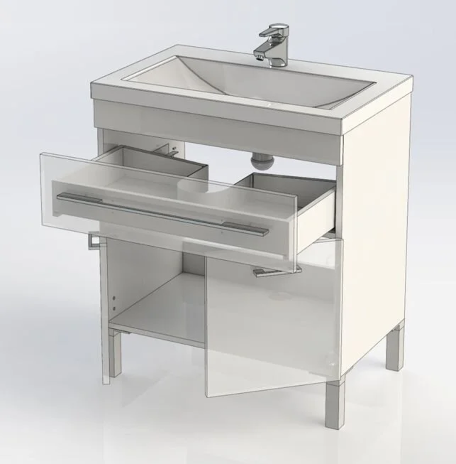 Тумба напольная Размер: 75.2*48*87.5 см Двери: 2 распашные Выдвижные ящики: 1 Материал: МДФ, ЛДСП Покрытие: акрил Цвет фурнитуры: хром Цвет: белый/черный
