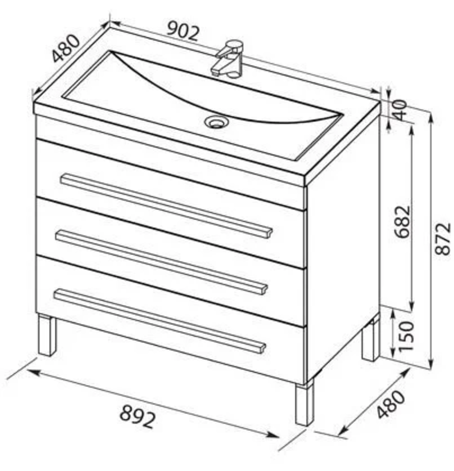 Тумба под раковину Aquanet Верона 90 напольная (3 ящика)