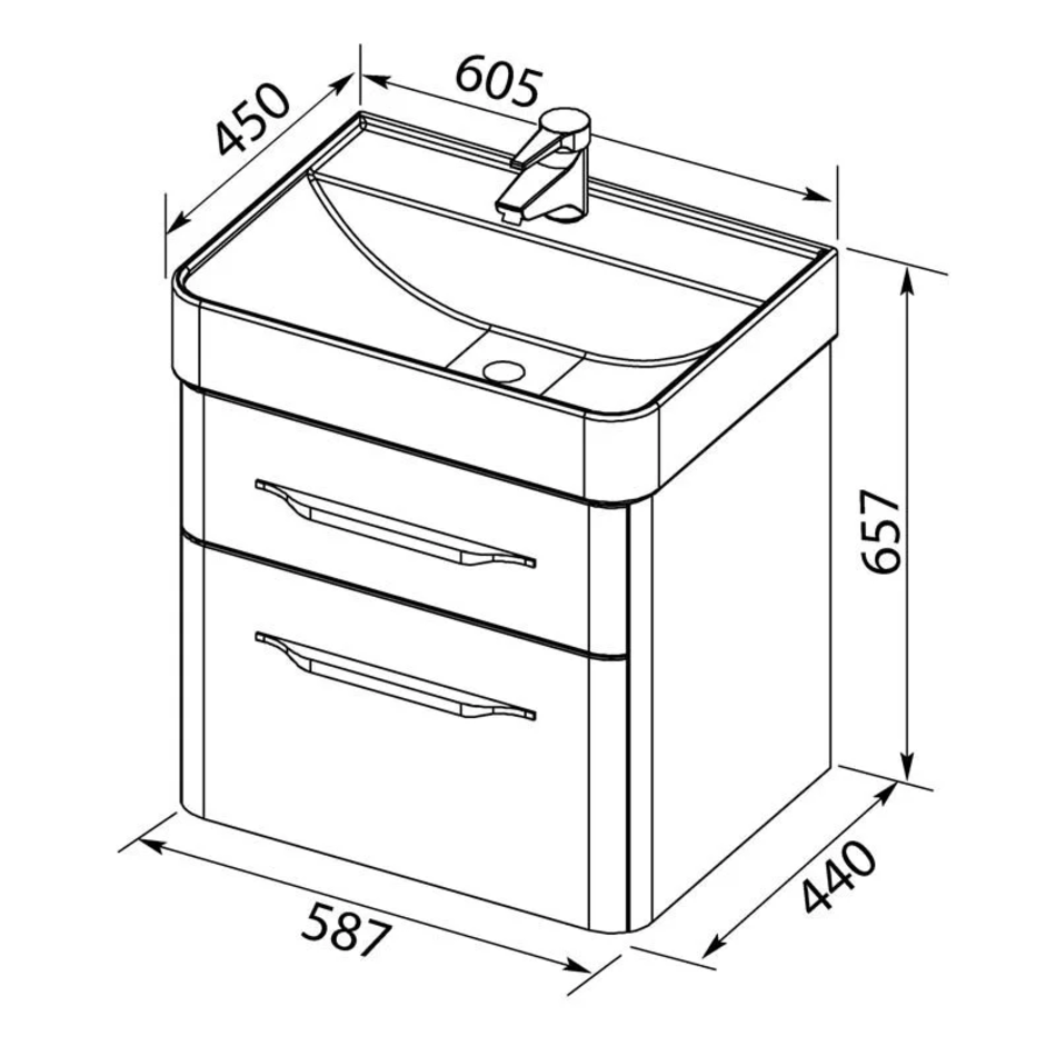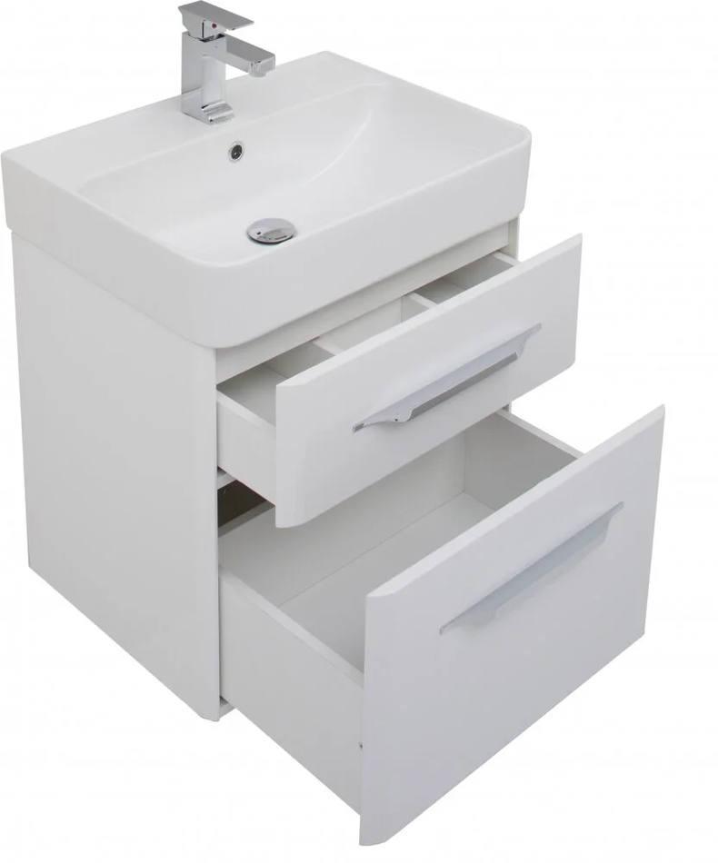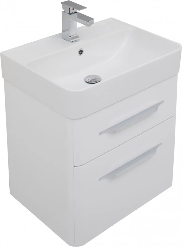 Тумба подвесная Размер: 60.5*45*65.7 см Выдвижные ящики: 2 Механизм доводчика Материал: МДФ, ЛДСП Покрытие: краска/глянец Цвет фурнитуры: хром Цвет: белый