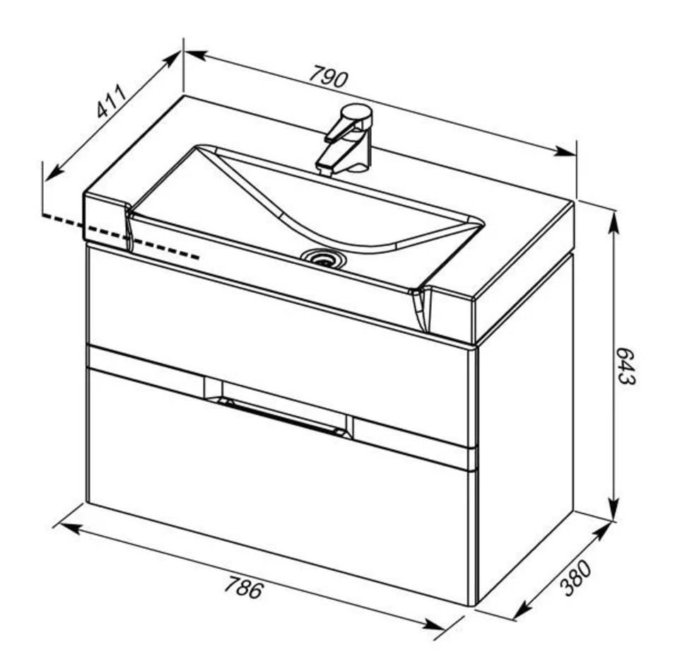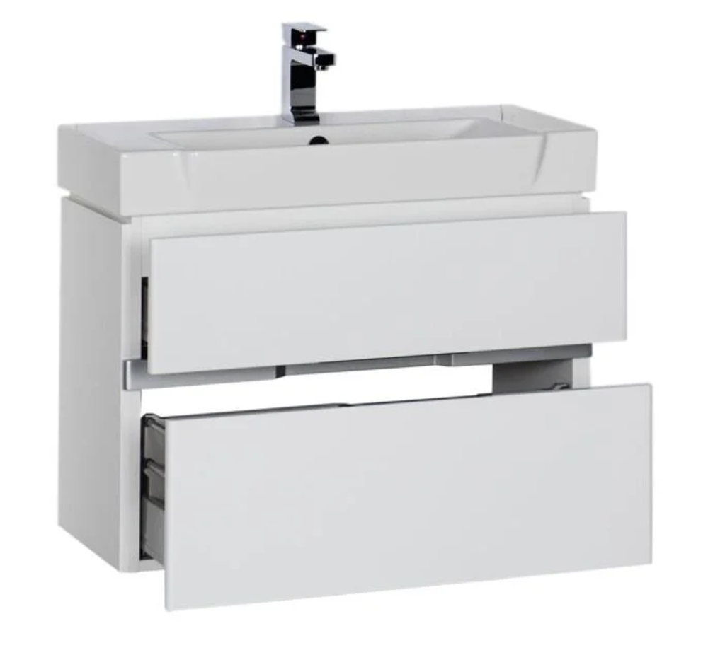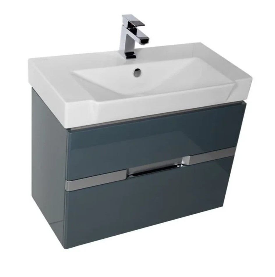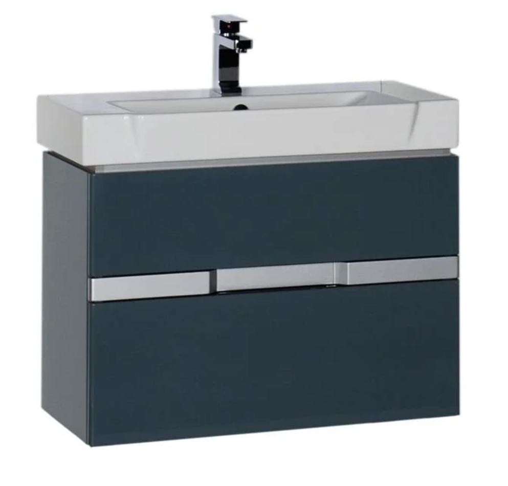 Тумба подвесная Размер: 79*41.1*64.3 см Выдвижные ящики: 2 Механизм доводчика Материал: МДФ, ЛДСП Покрытие краска/глянец Цвет: белый /сине-серый RAL-7031