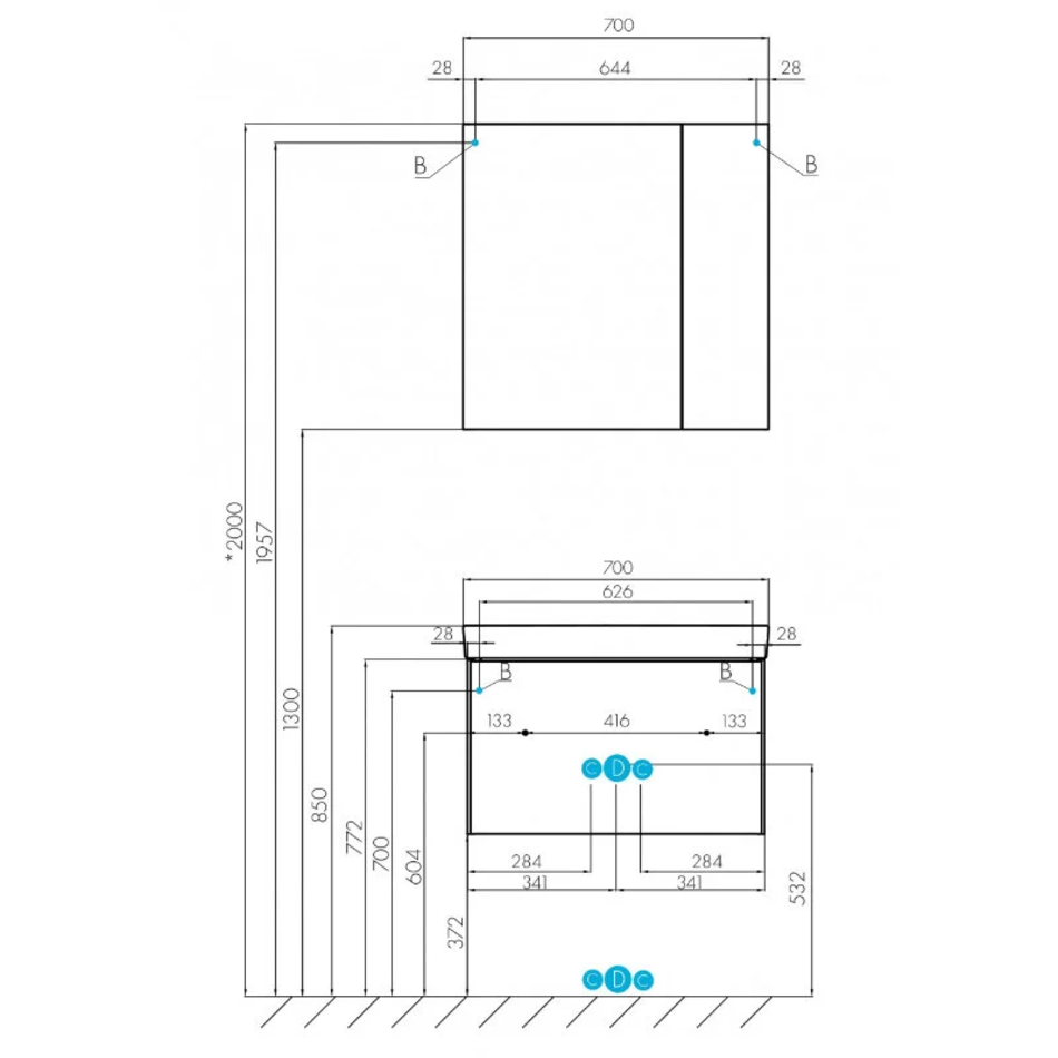 Комплектация Тумба -1шт., навес - 2 шт., ящик выдвижной с системой Push-to-Open - 1 шт., фасад ящика - 1 шт.