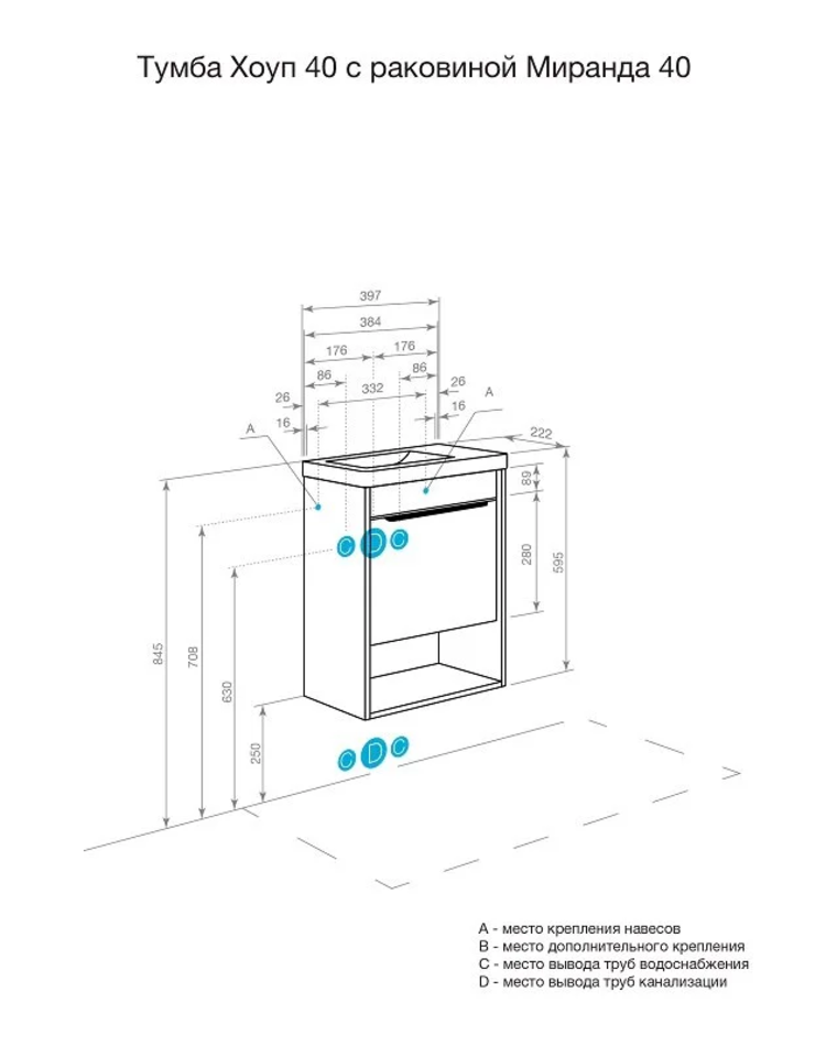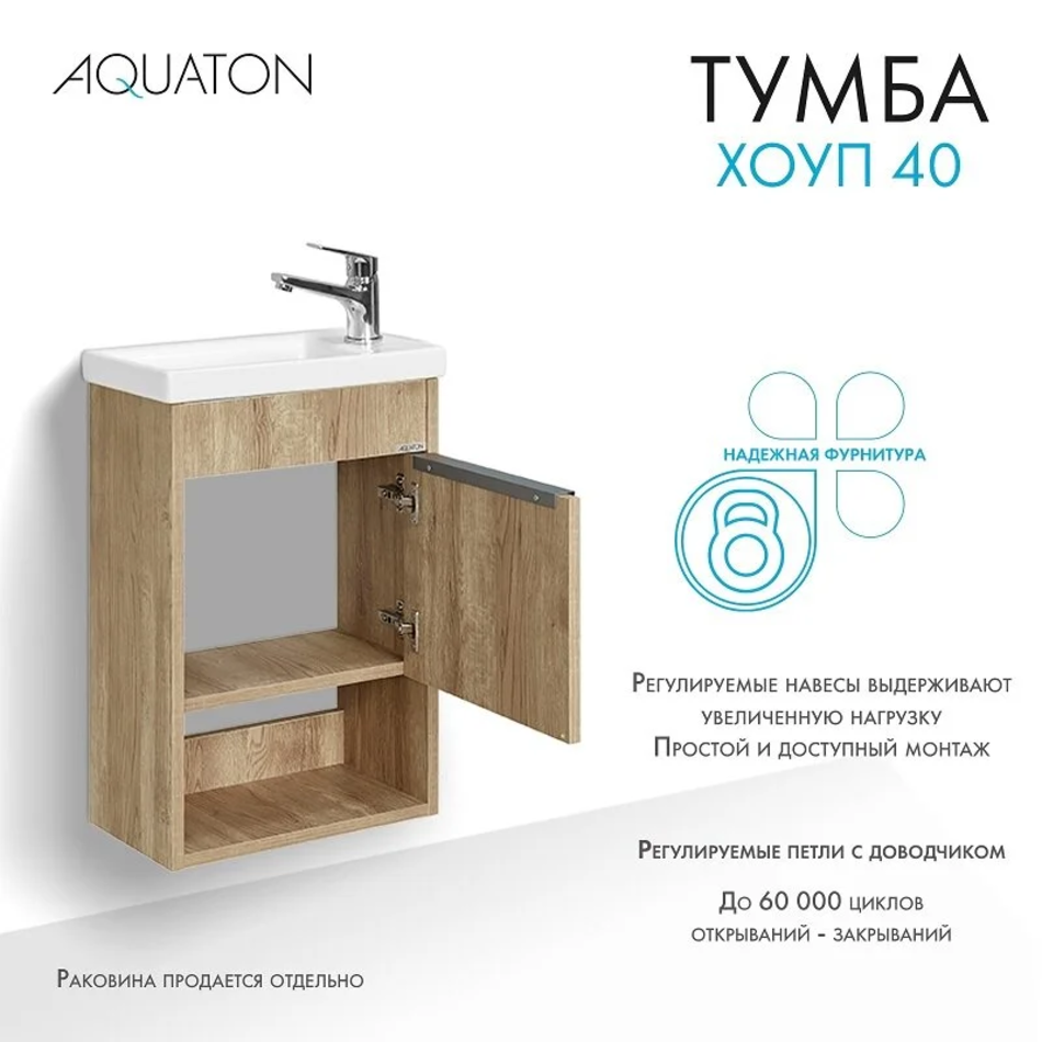 Тумба под раковину Aquaton Хоуп 1A287101HP6C0, 40 см, подвесная, цвет орех