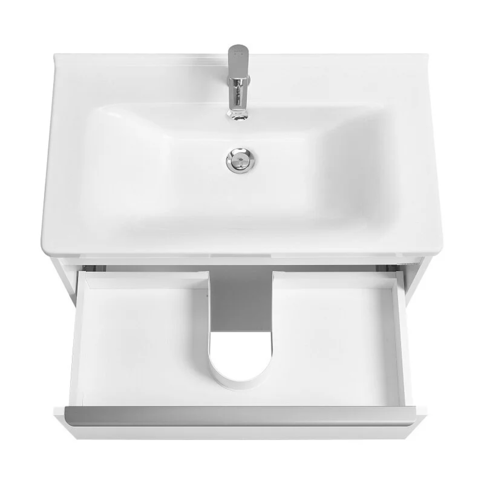 Корпус и фасад выполнены из влагостокой ЛДСП в белой матовой покраске полиэфирной краской ультрафиолетового отверждения.