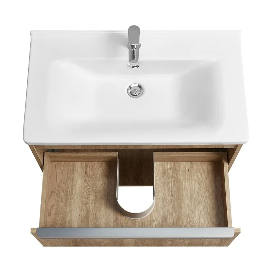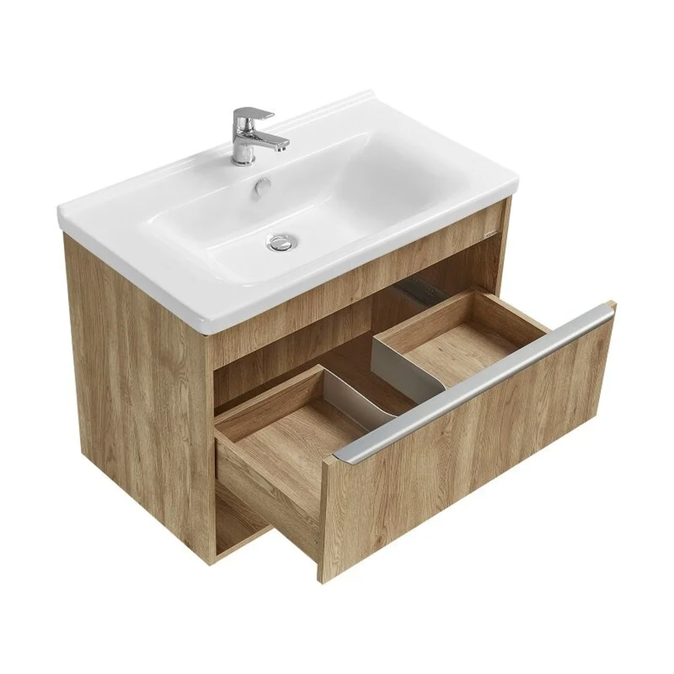 Корпус и фасад выполнены из влагостокой ЛДСП в текстурированном древесном декоре.