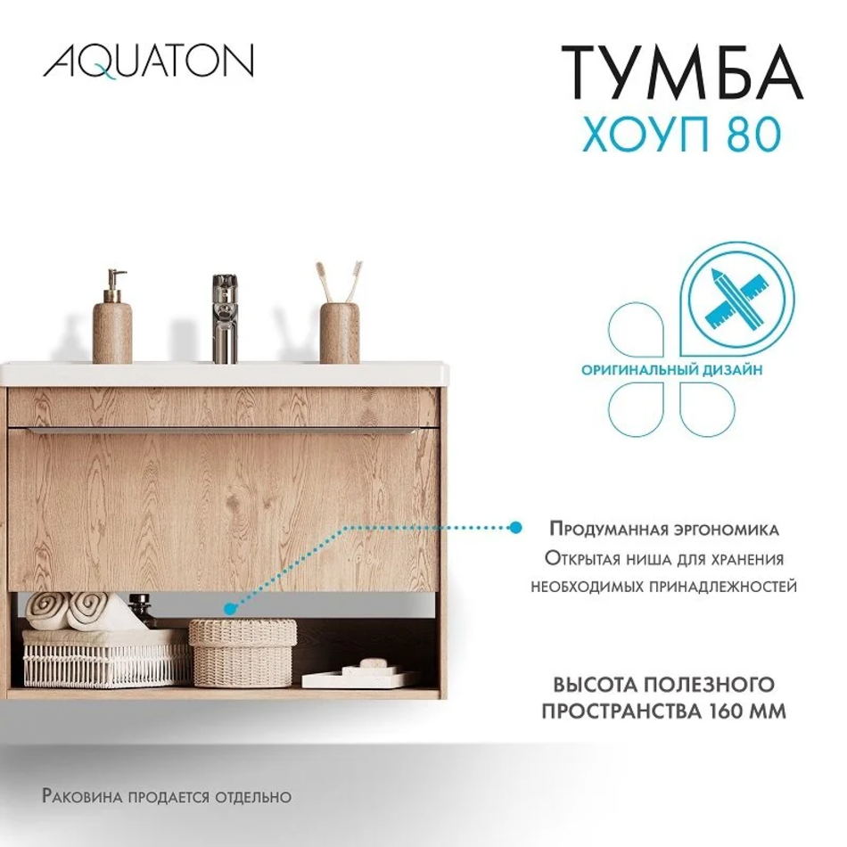 Тумба под раковину Aquaton Хоуп 1A287301HP6C0, 80 см, подвесная, цвет орех