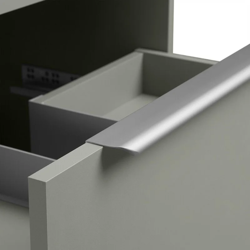 Направляющие полного выдвижения скрытого монтажа с доводчиком позволят использовать весь функционал ящиков бесшумно и с комфортом, а открытая ниша дает возможность убирать туда необходимы принадлежности, чтобы они всегда были под рукой.
