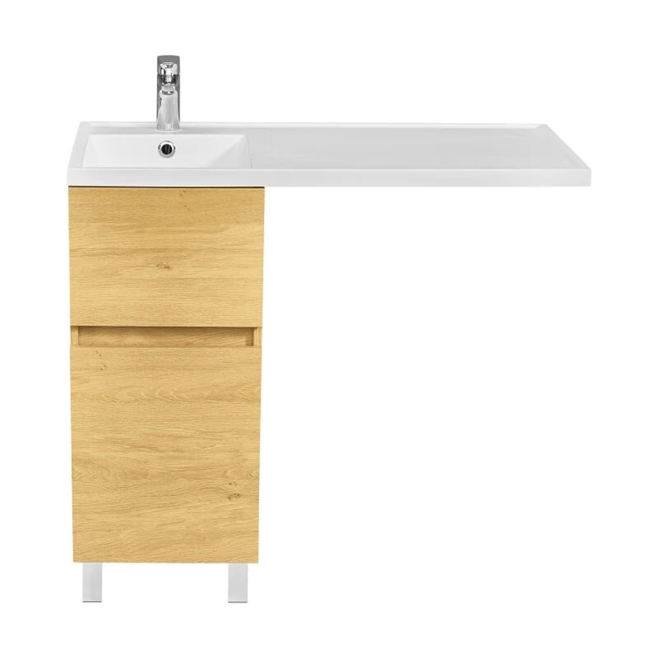 Тумба под раковину Aquaton Лайн 1A232201LFDK0, 40 см, для установки со стиральной машиной, цвет дуб каменный