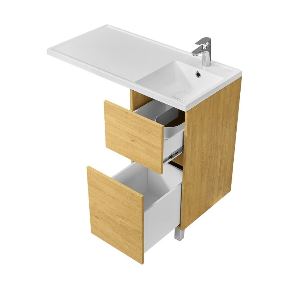 Материал тумбы - влагостойкая ЛДСП в стильном декоре дуб каменный.