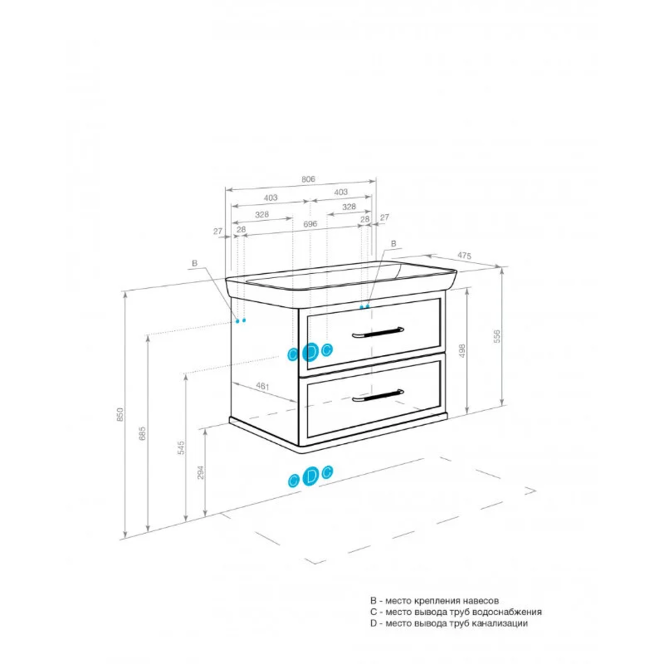 Тумба под раковину Aquaton Нео-Классика 1A286301NCR30, 85 см, подвесная, цвет мускат
