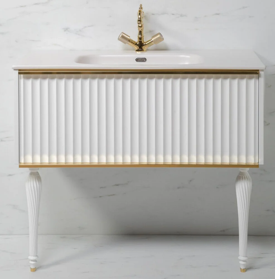 Тумба под раковину Armadi Art Canale 100 см, напольная, белый, золото, 843-100-WG