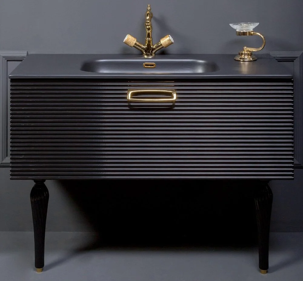 Тумба под раковину Armadi Art Linea 100 см, напольная, черный, золото, 842-100-BG