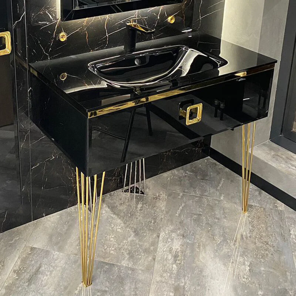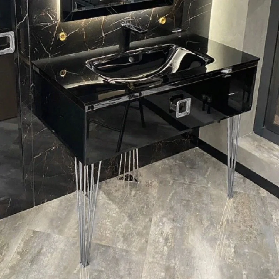 Тумба под накладную раковину Размер: 100 x 50 x 30 см Монтаж: подвесной Ящики выдвижные: 1 Система плавного закрывания Материал: МДФ Форма: прямоугольная Цвет: черный