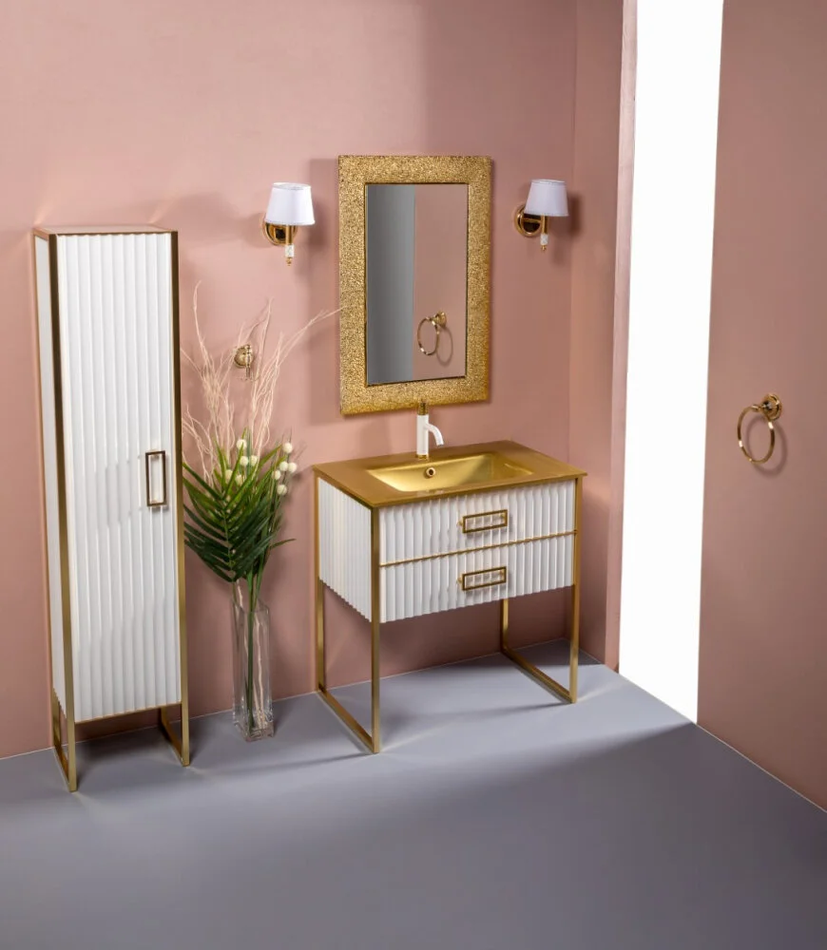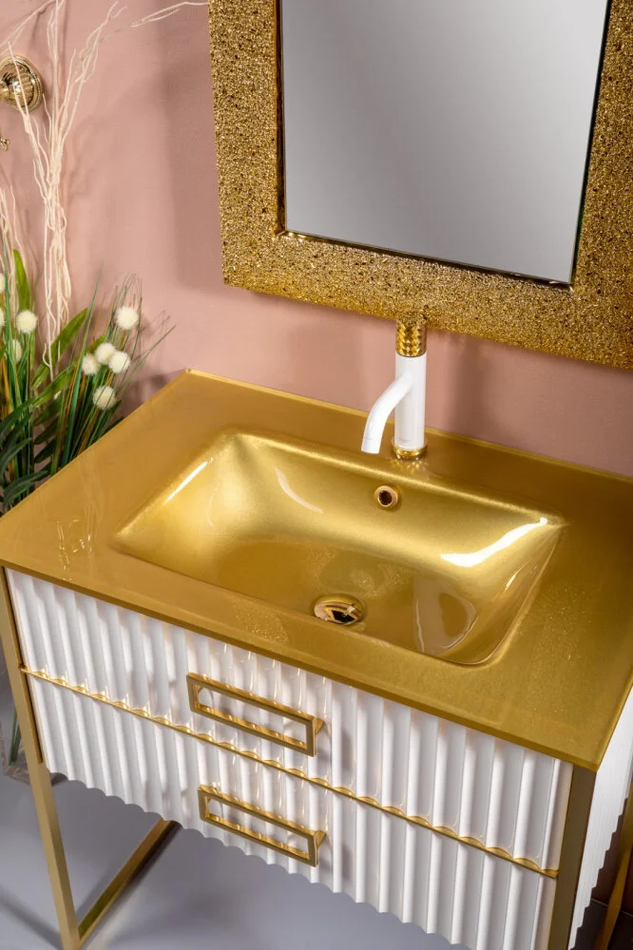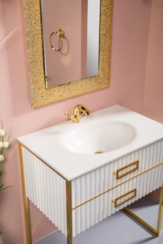 Тумба под раковину Armadi Art Monaco 80 см, напольная, белый, золото, 866-080-WG