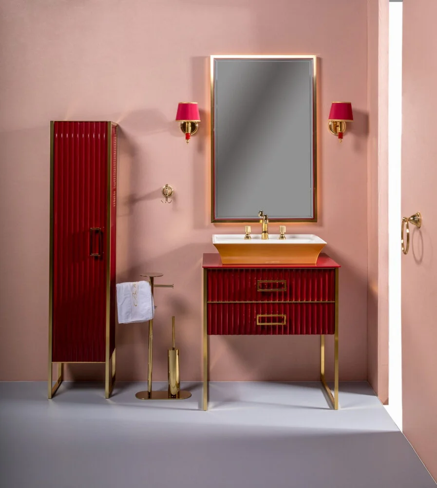 Тумба под раковину Armadi Art Monaco 80 см, напольная, бордовый, золото, 867-080-RG
